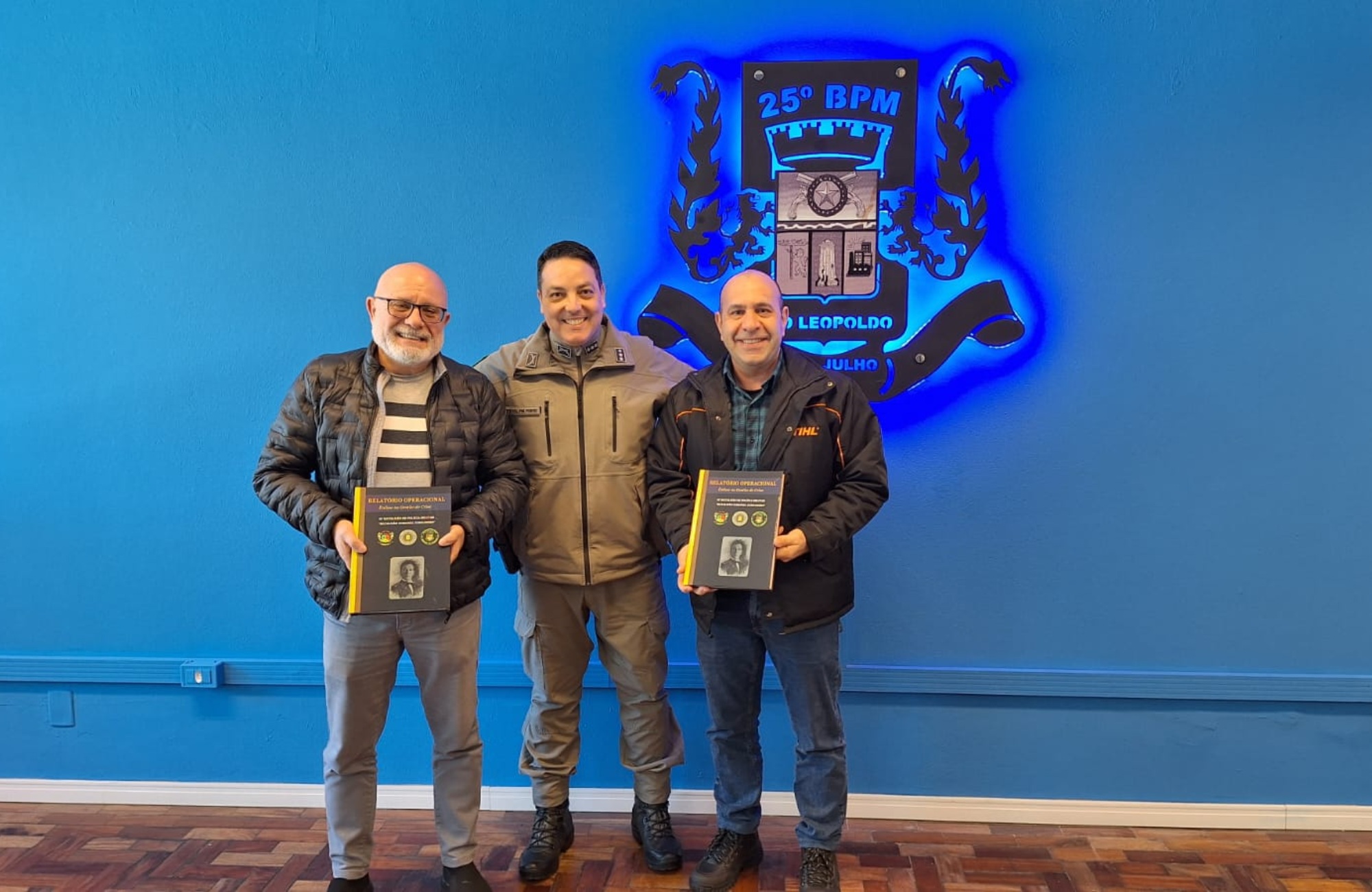 O comandante do 25º Batalhão de Polícia Militar (BPM), tenente-coronel Luciano Ferreira Porto, recebeu na tarde desta quarta-feira (30) a visita do presidente do Conselho Comunitário de Segurança (Consepro) de São Leopoldo, Rogério Daniel da Silva, acompanhado do vice-presidente Antônio Marcos de Oliveira. O encontro teve como objetivo estreitar os laços entre a Brigada Militar e o Conselho Comunitário, que há anos atua em colaboração com a corporação para apoiar as estruturas e o ambiente de trabalho dos policiais militares.