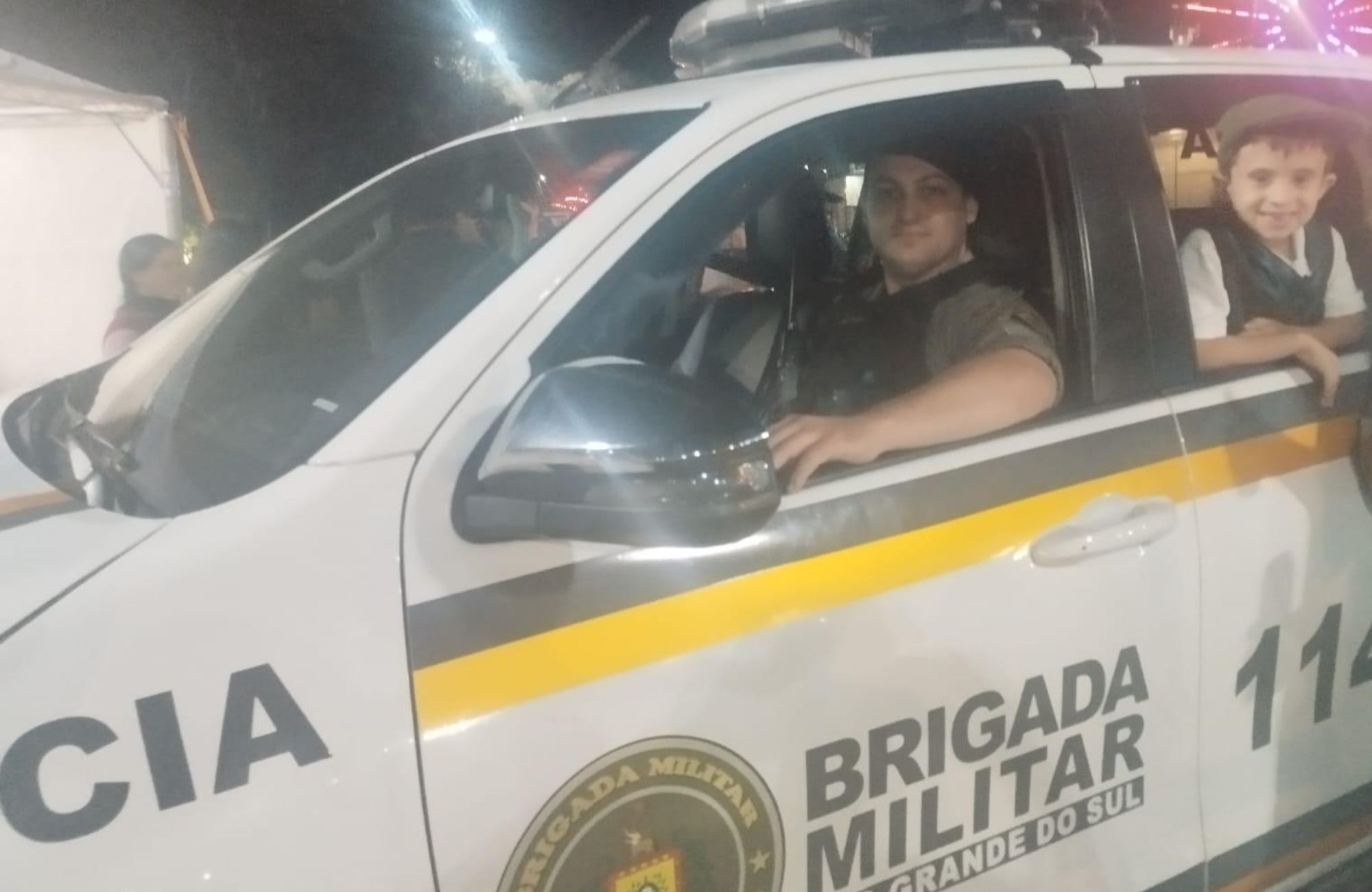 Na noite de sábado (16) durante patrulhamento ostensivo no Acampamento Farroupilha, em Sapiranga, a Brigada Militar (BM), foi surpreendida por um pedido do pequeno Luan, de 5 anos, o qual parou a viatura e pediu para dar um abraço nos policiais militares do 32º Batalhão de Polícia Militar (32º BPM), que prontamente desceram da viatura e retribuíram o gesto.