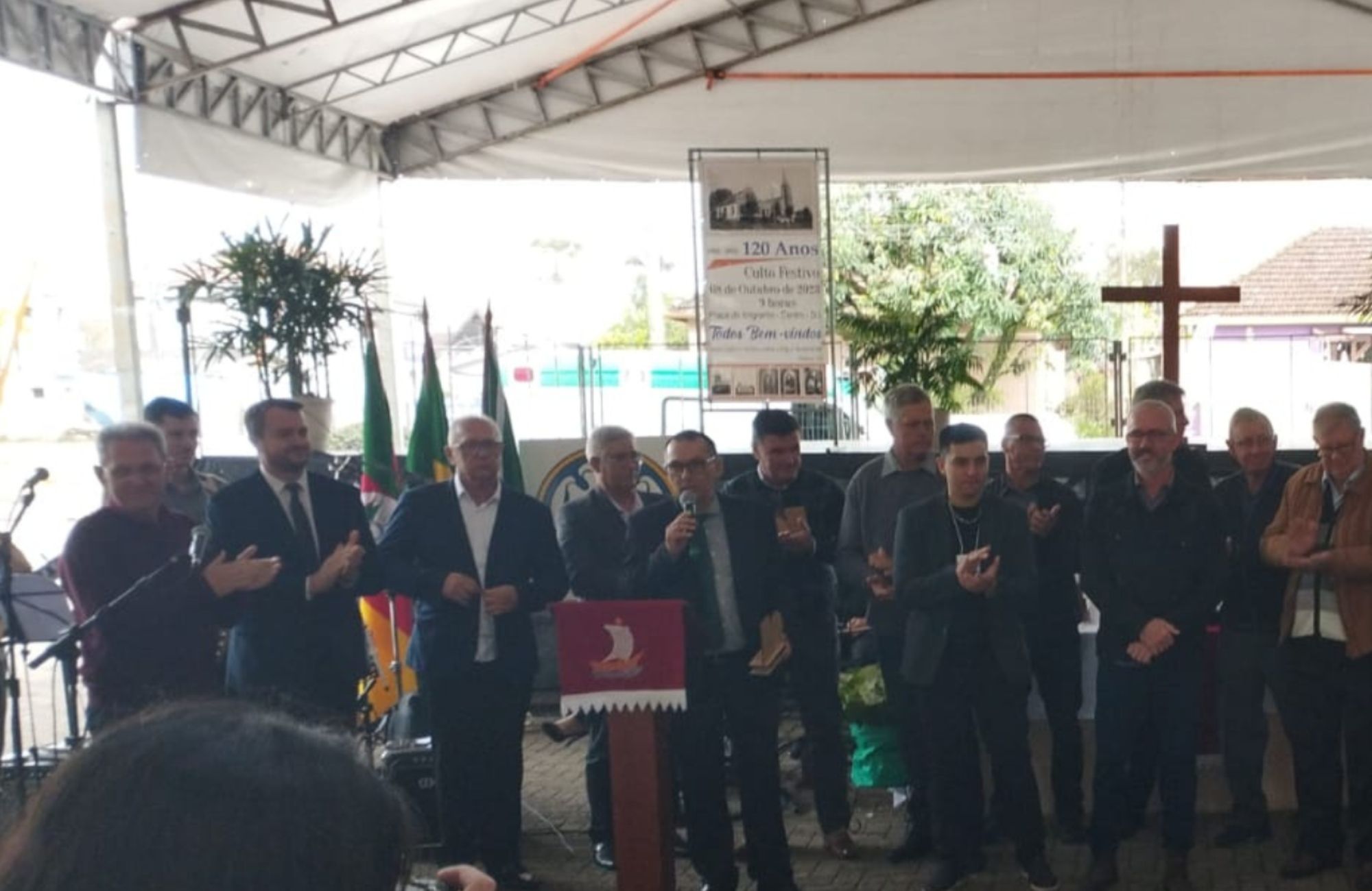 Para celebrar a data, neste domingo (8) foi celebrado um culto festivo aos 120 anos, na Praça do Imigrante, no centro de Dois Irmãos.