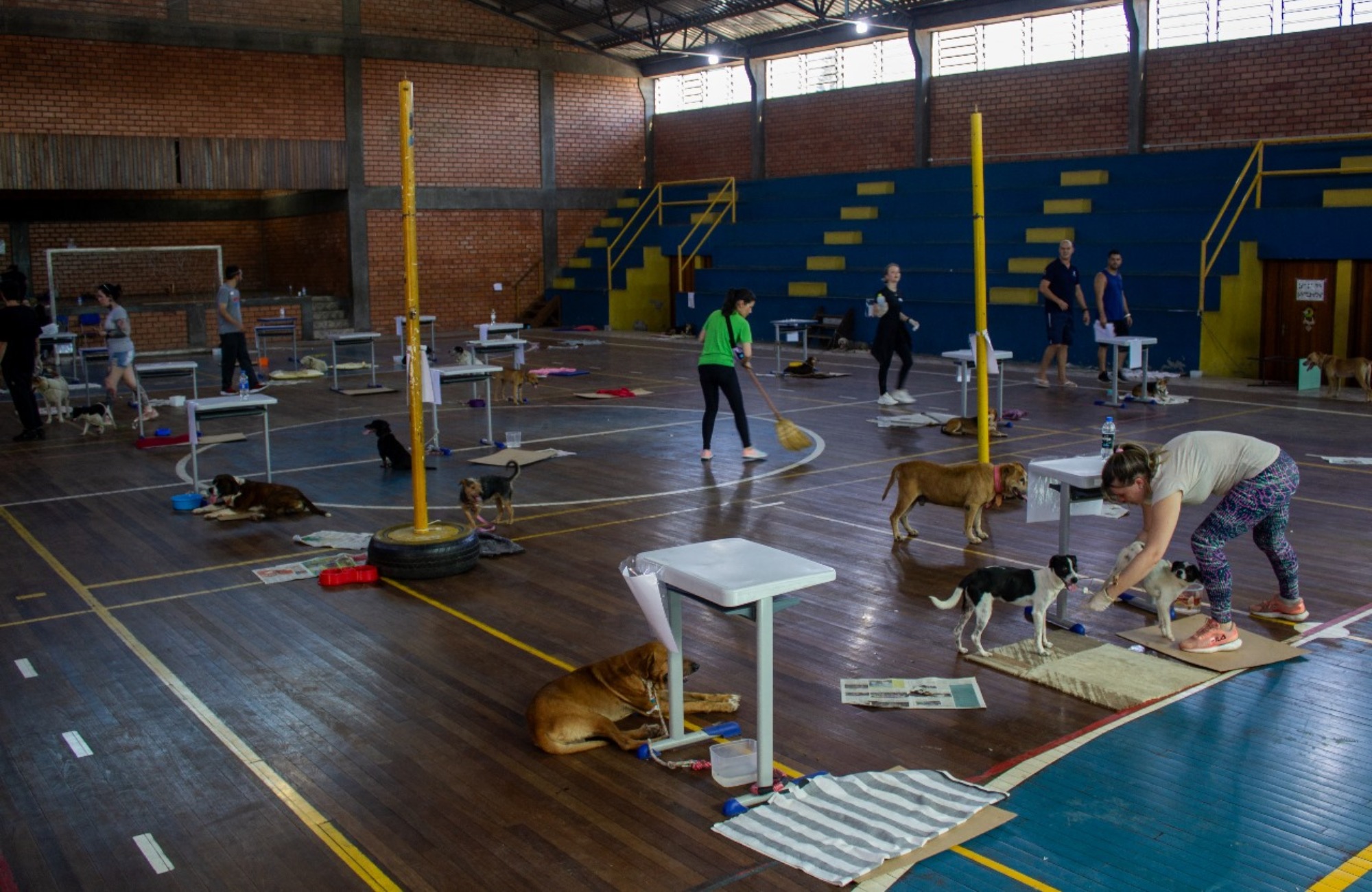 A maioria dos animais do local foram resgatados na região dos bairros Vicentina, São Miguel e Paim. “Pode ser que tenham animais de outras regiões que tenham sido trazidos pela correnteza, não se sabe. Tutores podem se dirigir à escola para procurar se os seus animais que estão aqui”, informa o secretário Walter Verbist. Ainda na tarde de terça-feira, 7 de maio, cinco tutores encontraram seus pets.