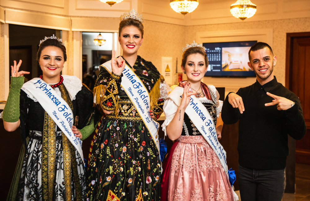 As Soberanas do Folclore Alemão e anfitriãs da 47ª edição, Rainha Andressa Haas, 1ª Princesa Sara de Freitas e 2ª Princesa Luana Heck, enfatizaram o orgulho em representar o maior evento cultural da Serra Gaúcha.