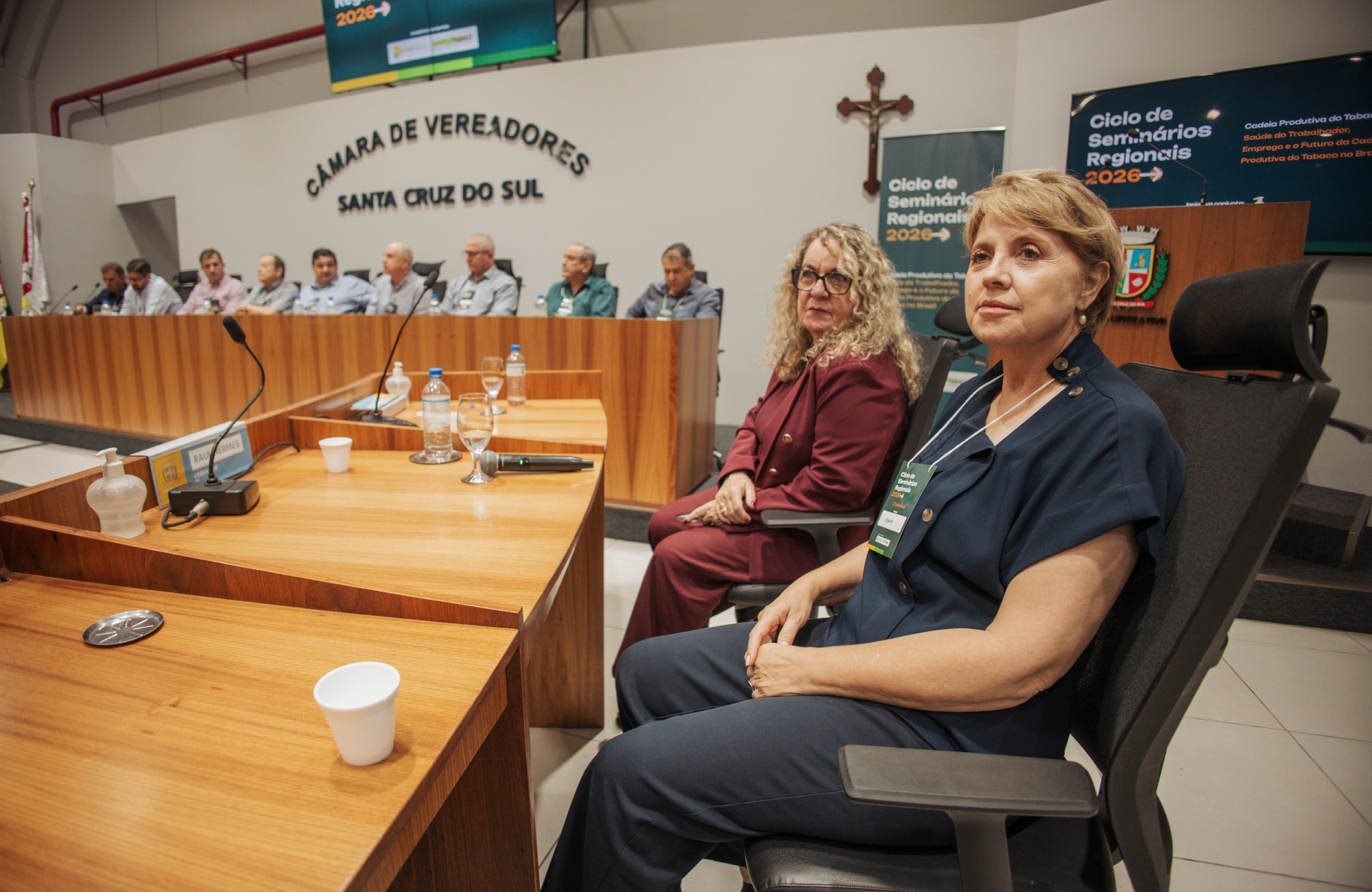 O primeiro encontro do Ciclo de Seminários Regionais sobre a cadeia produtiva do tabaco ocorreu nesta quinta-feira, 23, na Câmara de Vereadores de Santa Cruz do Sul, reunindo lideranças institucionais, autoridades, especialistas e trabalhadores da indústria em torno de um compromisso público com a defesa do emprego, da saúde do trabalhador e da sustentabilidade da atividade. O debate foi mediado pelos presidentes da Federação Nacional dos Trabalhadores nas Indústrias do Tabaco e Afins (Fentitabaco), Rangel Marcon, e da Associação dos Municípios Produtores de Tabaco (Amprotabaco), Gilson Becker.