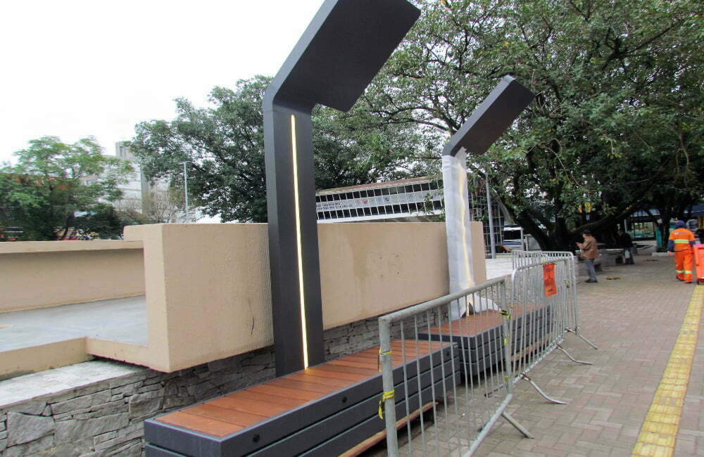 O mobiliário da Praça do Imigrante e do Calçadão Osvaldo Cruz segue chegando para ser instalado nos locais. Por último, foram colocados dois totens para o carregamento de celulares alimentados por energia solar. As peças chamam atenção de quem passa pela Avenida Pedro Adams Filho e reforçam a preocupação do Programa de Desenvolvimento Municipal Integrado (PDMI) com a sustentabilidade e modernização.