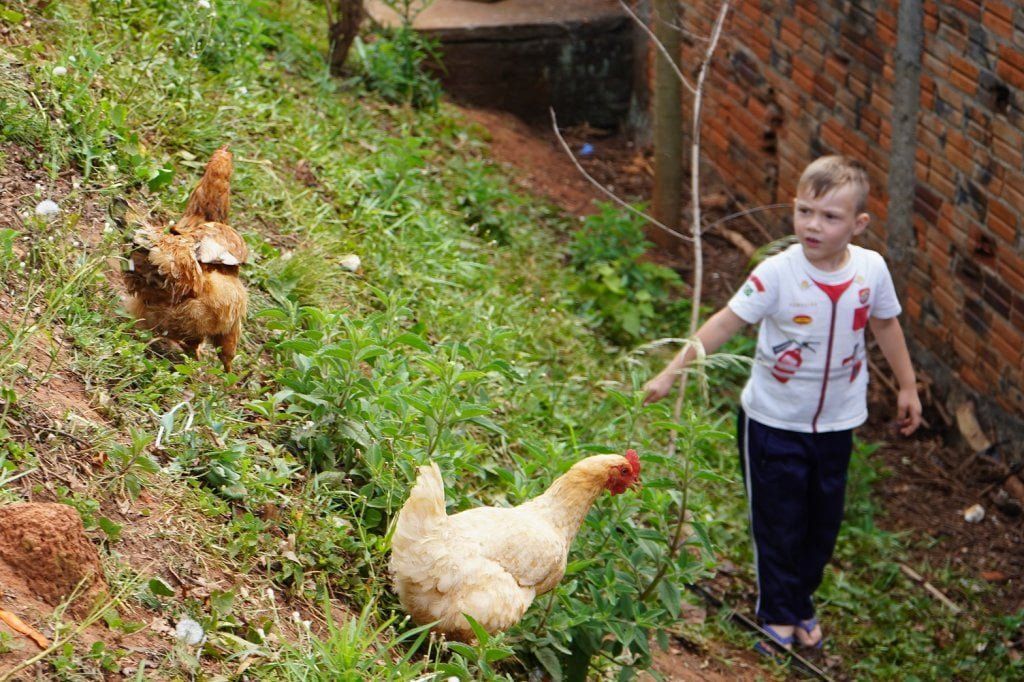 A professora Angélica da Silva Paulo, coordenadora do projeto da Bem-viver, conta que em 2021 foi retomado o planejamento de um sonho ousado: a criação de uma Agrofloresta. “Um espaço íngreme da escola, que não era utilizado pelas crianças. Foi lindo vê-las extrapolando os muros da escola e habitando esse local”, conta, entusiasmada. Na Agrofloresta foram plantadas laranjeiras, araçás, chal chal, goianeory, citrus, aipim e cana de açúcar. Com o auxílio de uma família da comunidade escolar, foi construído um galinheiro, e as novas integrantes, as galinhas Lindinha e Lindona começaram a fazer parte do dia a dia da Bem-viver. Hoje as crianças convivem, também, com o coelho Julinho que foi doado por uma família.