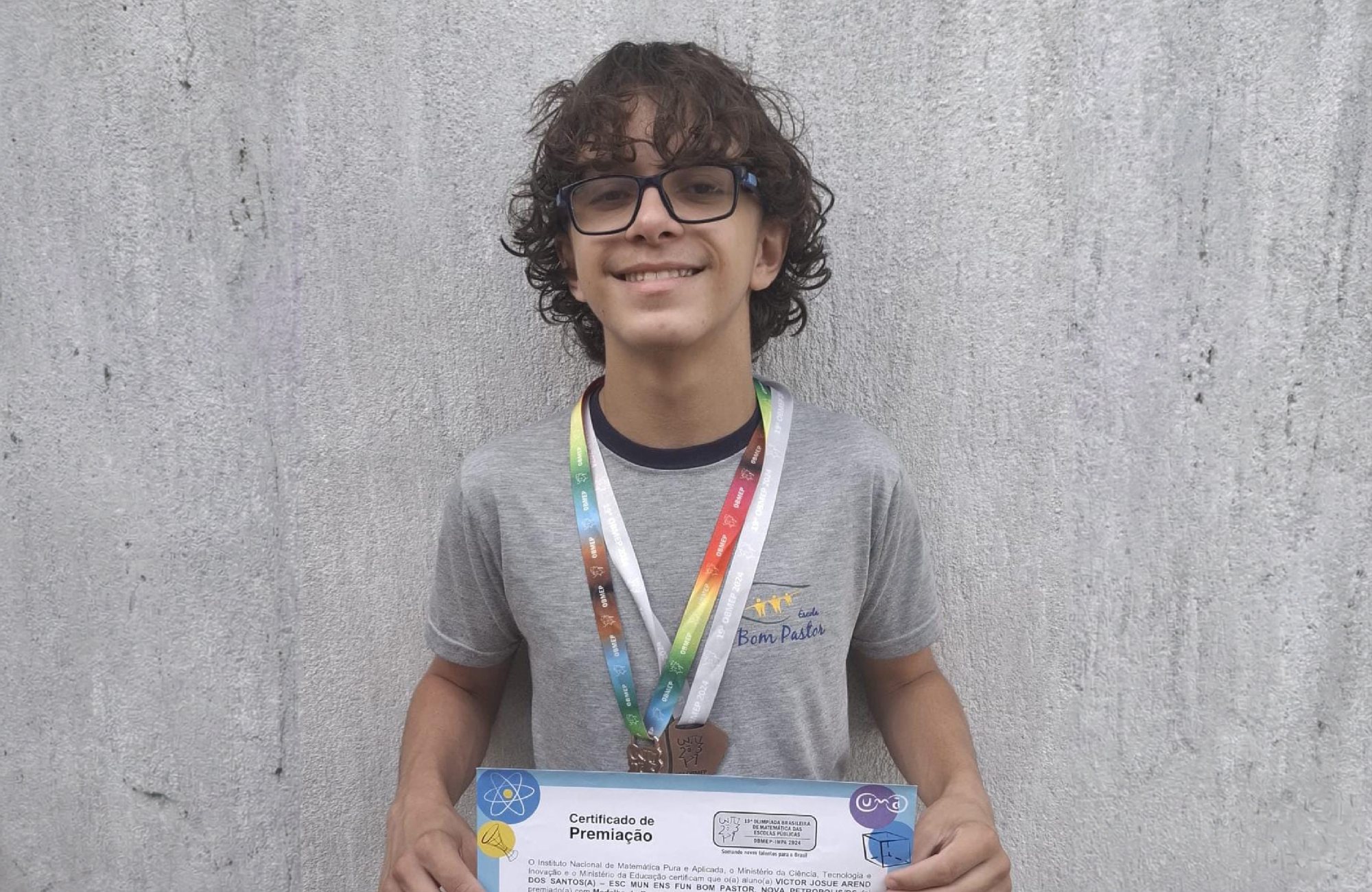 O aluno Victor Josué Arend dos Santos, da Escola Municipal de Ensino Fundamental Bom Pastor de Nova Petrópolis, foi selecionado para participar do Curso de Verão do Programa Especial de Treinamento Internacional da Olimpíada Brasileira de Matemática (PETI-OBM). O treinamento online de alto nível, que acontece de 5 a 23 de janeiro de 2026, reúne estudantes de todo o país que se destacaram na Olimpíada Brasileira de Matemática das Escolas Públicas (Obmep) de 2025.