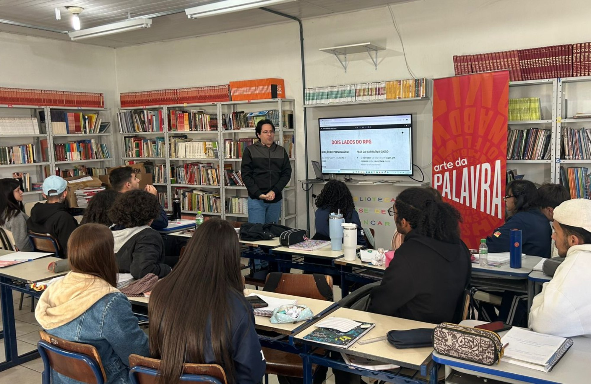 Exclusiva para alunos da escola, a oficina apresentou elementos que estruturam os jogos de RPG (role-playing game), com foco na criação de narrativas e personagens baseadas em contos populares brasileiros. Para isso, Guerra utilizou como referência o livro Contos Tradicionais do Brasil para Jovens, que reúne relatos coletados pelo pesquisador Câmara Cascudo.