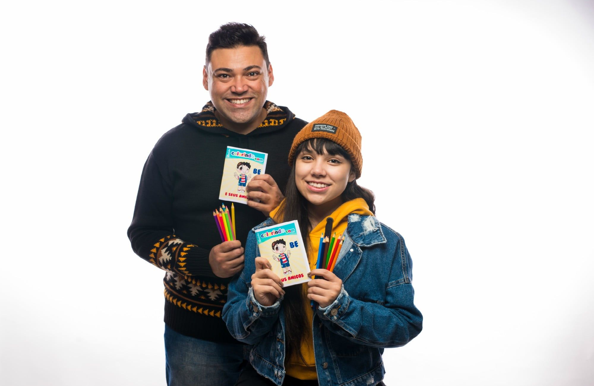 A filha Isadora, de 15 anos, foi a ilustradora e criou diversos personagens que foram inspirados em nossos amigos pessoais para as crianças pintarem. Entre as pessoas escolhidas para serem transformadas em bonecos estão jornalistas, influenciadores digitais, personalidades gaúchas que são engajados em causas sociais.
