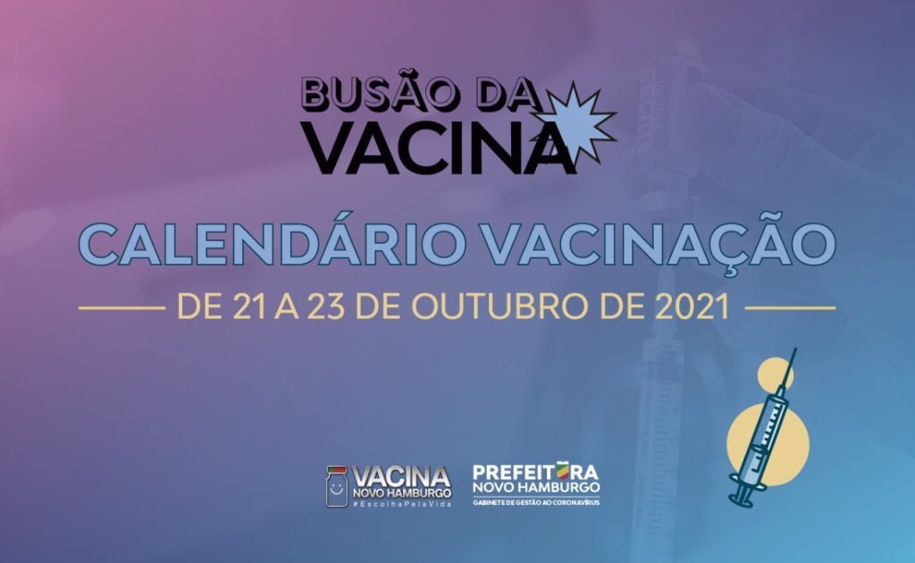 A Secretaria de Saúde de Novo Hamburgo divulgou os locais de vacinação com a Unidade Móvel de Vacinação, o Busão da Vacina, de quinta-feira, 21 de outubro, até o sábado, 23 de outubro. Nos três dias serão aplicadas, exclusivamente com o imunizante da Pfizer, a primeira, segunda e terceiras doses.