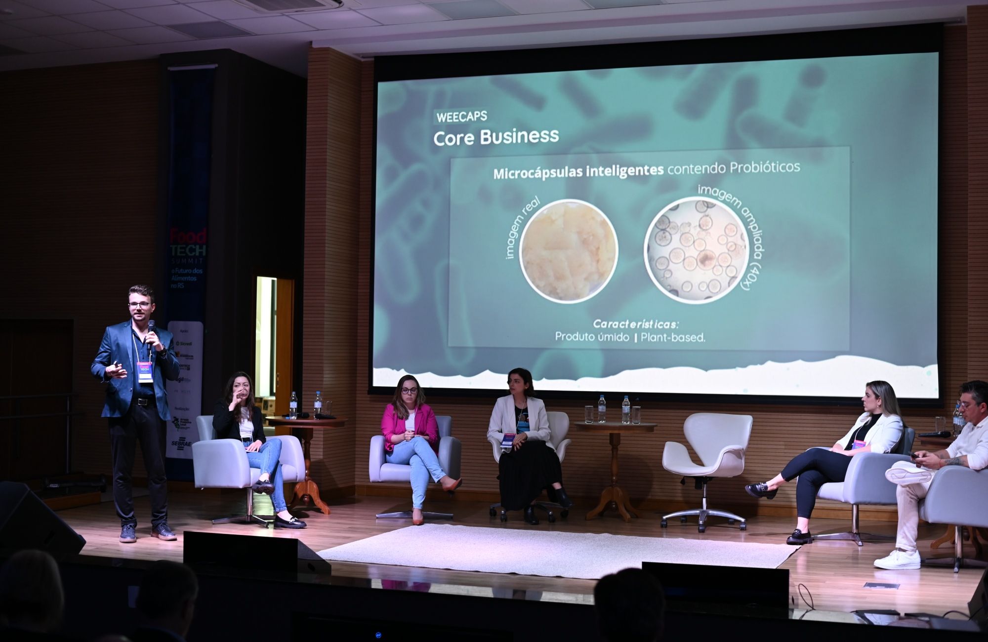 O evento também trouxe alguns cases que já estão presentes no mercado, como o da empresa Weecaps, startup criada no ano de 2020, em Santa Maria, com o intuito de solucionar a oferta limitada dos saudáveis probióticos. “Hoje em dia, esses microorganismos vivos estão restritos a produtos lácteos e fármacos, pois não sobrevivem a outros tipos de ambientes. Com a nossa tecnologia, seus benefícios podem ser aproveitados em alimentos como sucos ou snacks, enriquecendo seu valor nutricional”, explica o mentor da Weecaps, Arthur Borges.