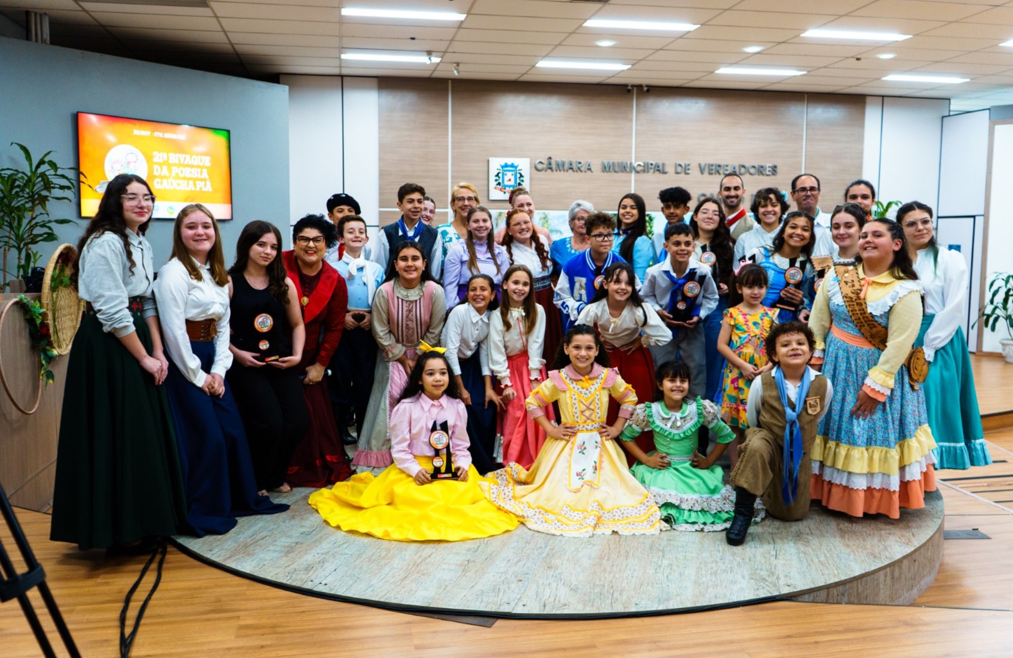 A final do 21º Bivaque da Poesia Gaúcha Piá reuniu 30 estudantes na noite de sábado (23) na Câmara de Vereadores de Campo Bom. O evento, promovido pela Prefeitura do município em parceria com o CTG M’Bororé, premiou os destaques da literatura e declamação escolar em diversas categorias após um processo que contou com mais de 200 inscritos.