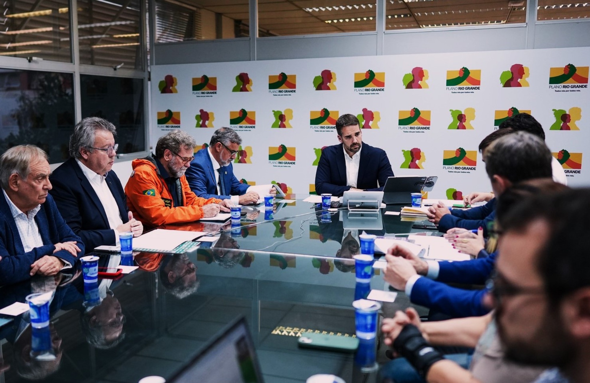 O governador do Rio Grande do Sul, Eduardo Leite (PSDB) realizou uma reunião no fim da tarde desta quarta-feira (12) com representantes de entidades empresariais do estado e o ministro da Secretaria Extraordinária de apoio à Reconstrução do Rio Grande do Sul, Paulo Pimenta. O encontro ocorreu no Centro Administrativo de Contingência, em Porto Alegre. A motivação da reunião foi a apresentação das demandas dos setores produtivos após as enchentes e para que soluções conjuntas fossem articuladas.