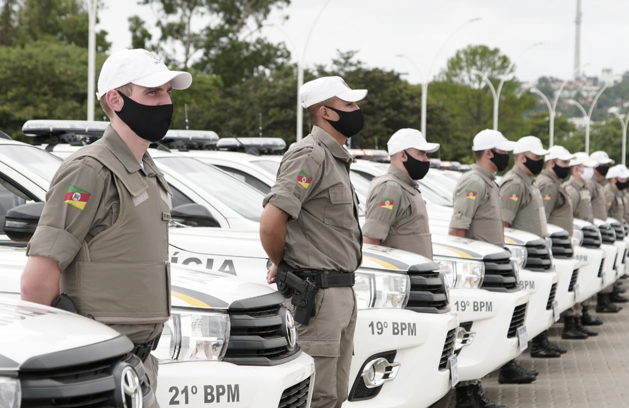 Mais segurança para quem faz a segurança da sociedade gaúcha. Para isso, o governo do Estado entregou, na manhã desta quarta-feira (20), 53 viaturas zero quilômetro semiblindadas para a Brigada Militar. Assim, o ato para a entrega, conduzido pelo governador Eduardo Leite e o vice-governador e secretário da Segurança Pública, delegado Ranolfo Vieira Júnior, ocorreu no estacionamento do Parque Marinha do Brasil, na Capital, com a presença dos prefeitos das cidades contempladas.