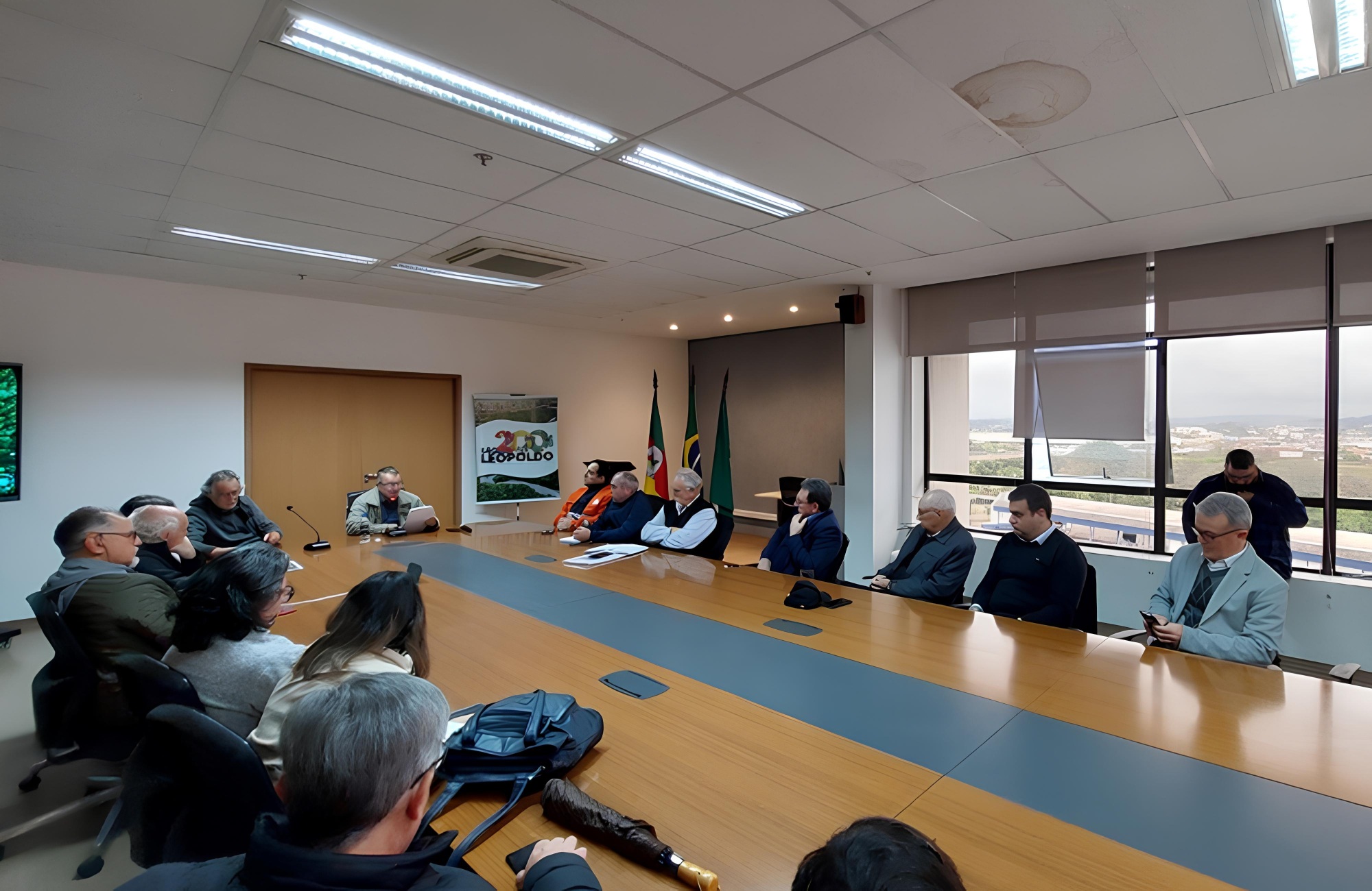 Representantes do poder público e da sociedade civil participaram nesta segunda-feira (29) de uma reunião convocada pela Prefeitura Municipal de São Leopoldo. O objetivo do encontro foi mostrar a minuta do decreto que cria o Grupo Permanente de Acompanhamento do Sistema de Proteção Contra Cheias do Rio do Sinos, que será responsável por ajudar a elaborar as medidas necessárias para evitar que ocorram novas catástrofes como a enchente de maio de 2024, que atingiu 180 mil moradores da cidade.