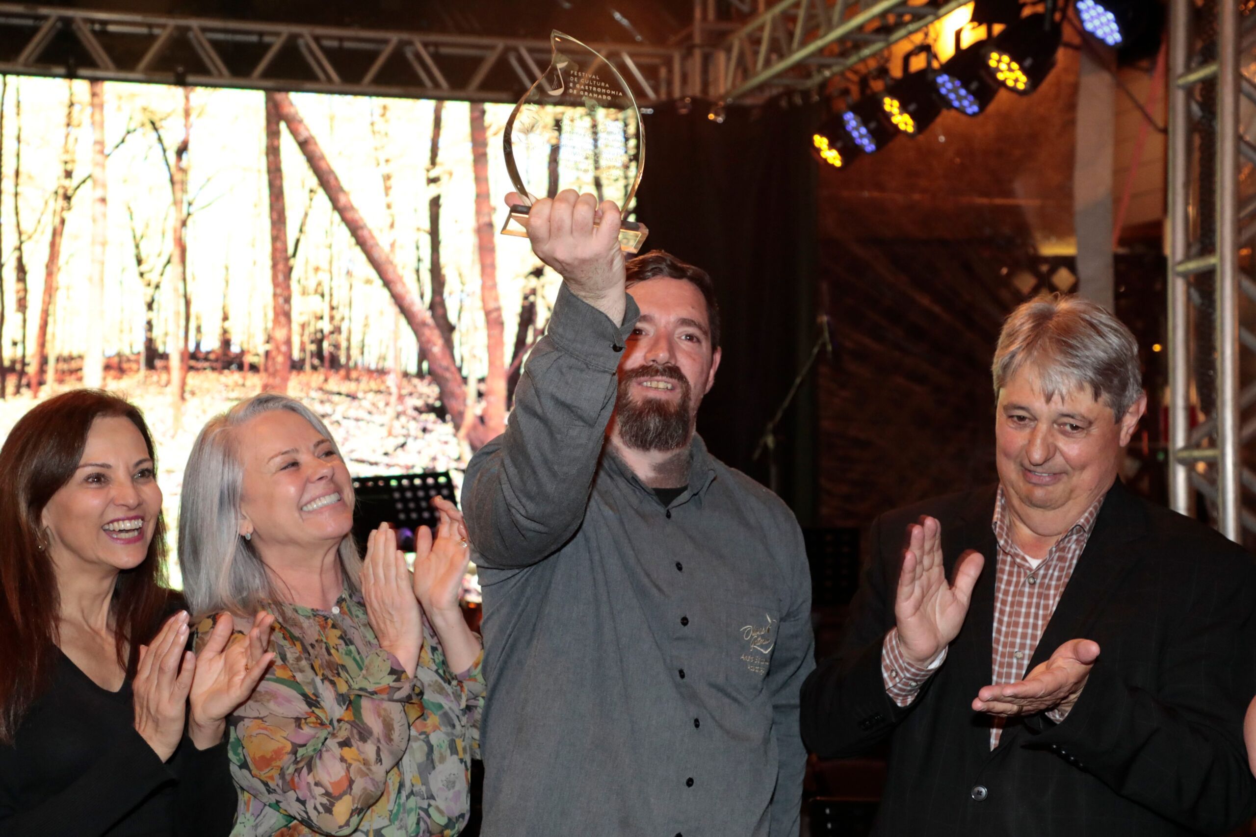 O prefeito Nestor Tissot, a presidente da Gramadotur, Rosa Helena Volk, e a diretora da Cristais de Gramado, Irane Land, entregaram ao sócio-proprietário do Olivas de Gramado, André Bertolucci, uma placa em cristal reconhecendo o legado do parque no cultivo de oliveiras e na produção de azeites de oliva.