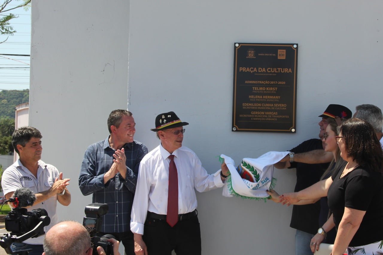 Na manhã de sábado (12), o prefeito Telmo Kirst inaugurou a Praça da Cultura de Santa Cruz do Sul. Na ocasião, também foi assinado o projeto de lei que nomeará o espaço “Praça da Cultura José Paulo Rauber Filho”.