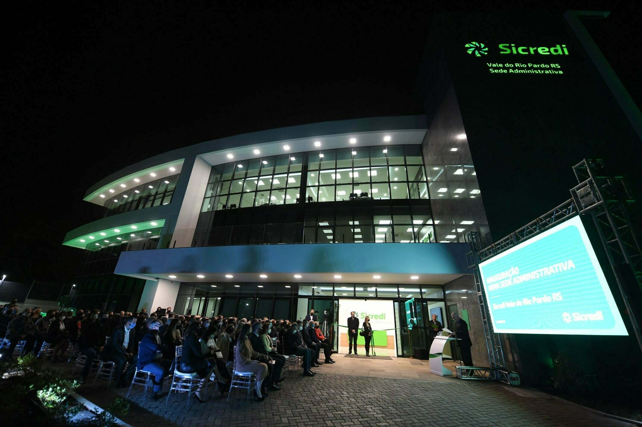 A terça-feira, 21 de setembro, ficará marcada na história da Sicredi Vale do Rio Pardo. Além de celebrar o aniversário de 102 da cooperativa, a data marcou a inauguração da nova sede administrativa da Sicredi VRP, em Santa Cruz do Sul (RS). A cerimônia, que ocorreu à noite, em uma estrutura montada em frente à sede, contou com a participação presencial de autoridades, conselheiros e convidados, com transmissão ao vivo pelo YouTube. A sede fica às margens da RSC 287, no trevo de acesso à Avenida Independência, e possui 2,7 mil metros quadrados de área construída, dividida em três pavimentos. O diferencial está no consumo de energia do prédio, que é totalmente atendido por uma usina solar fotovoltaica própria, inaugurada pela cooperativa em agosto, às margens da BR 471, no distrito de Rincão Del Rey, interior de Rio Pardo.