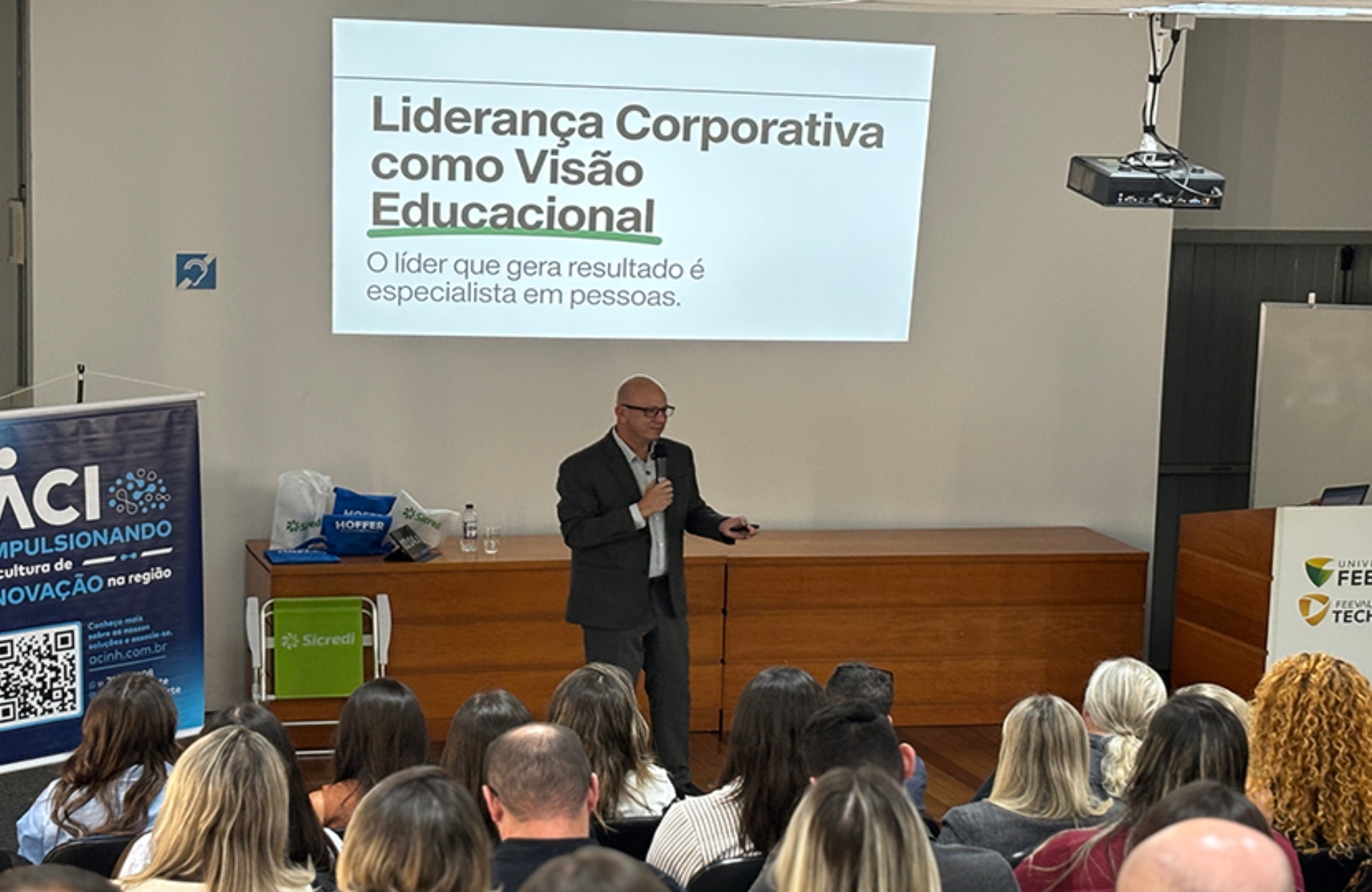 Por isso, cada vez mais empresas se voltam para o desenvolvimento de pessoas e abandonam o modelo tradicional de liderança, em que o foco está em processos, metas e cobrança, gerando equipes dependentes e de baixa maturidade. “O que gera resultados são pessoas que executam a estratégia”, destacou para os cerca de 90 profissionais que lotaram o auditório do Feevale Techpark.