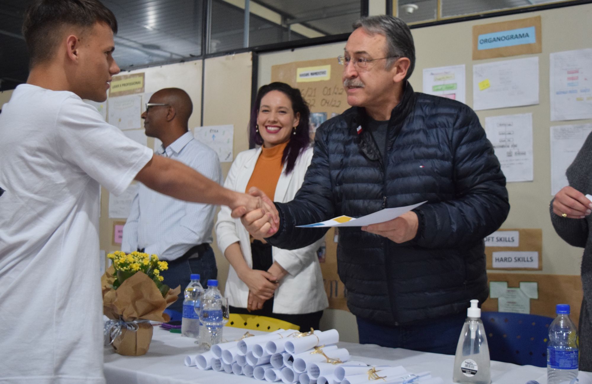 A cerimônia ocorreu na sede da Asbem, na Rua Guarujá, nº 171, no bairro Pátria Nova. A mesa foi composta pelo titular da Secretaria Municipal de Segurança, general Roberto Jungthon, que representou a prefeita Fátima Daudt, pelo diretor da Unidade de Gestão de Programas de Prevenção à Violência (UGPPV), Daniel Bota, pela assessora de gabinete da Secretaria de Desenvolvimento Social, Camila Dutra, pela presidente da Asbem, Deyse Engel Brandt, pela gerente administrativa financeira da entidade, Lilian Seidl, e pelas educadoras Tamires Ramos e Sandra Bergold. Representando os formandos, falaram Melany Tauhany Rodrigues, Arthur da Rocha Martins e Lucas Galski Tejada da Silva.