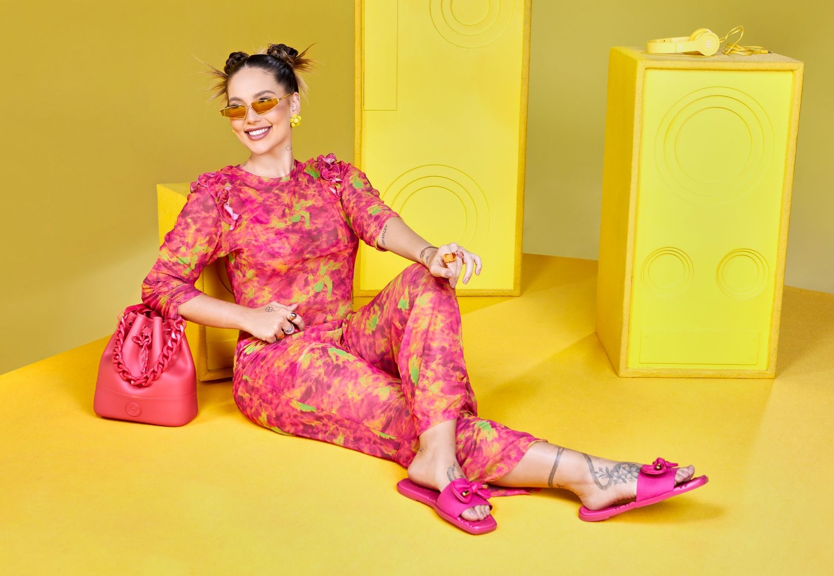 A ambiência monocromática, composta pelo amarelo e o pink, fazem parte identidade visual da marca, que busca transmitir uma energia positiva. A trilha sonora, embalada por beats do funk e da pisadinha, acompanha a mesma intenção. A campanha, que foi realizada em Goiânia, trabalhou com o conceito phygital, unindo os ambientes físico e digital, já que as seguidoras puderam acompanhar em tempo real, pela live no instagram da própria Virginia, os bastidores e os preparativos da produção, além de conferirem alguns “spoilers” das novidades.
