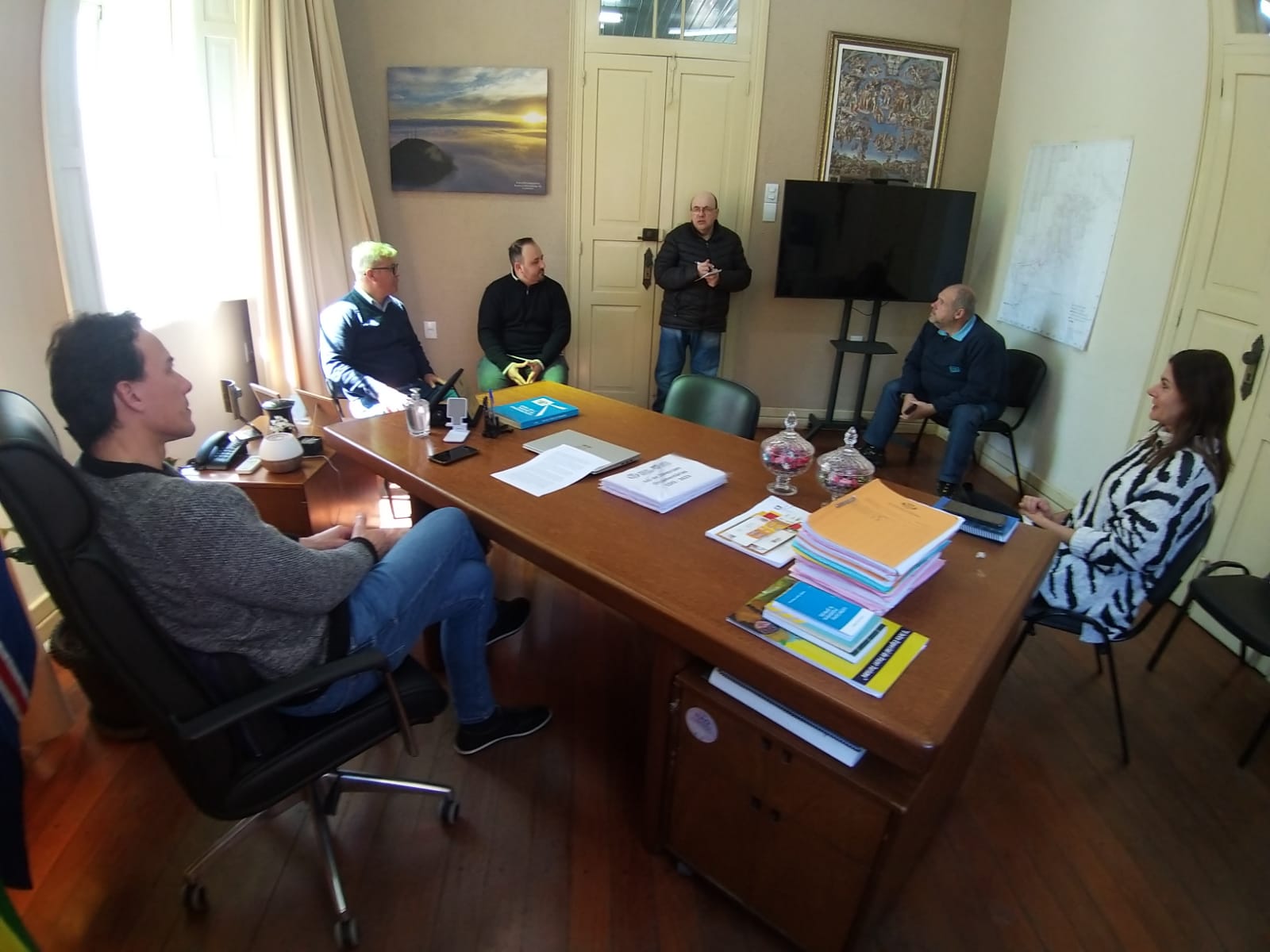 A informação foi divulgada esta tarde, durante uma reunião no gabinete do prefeito. Gustavo Zanatta recebeu a gestora da unidade local da Corsan, Silvani Scheid, e o engenheiro da companhia, Ângelo Marcelo Faro. Também participaram do encontro o gerente de Contratos e Convênios do Município, Silvio Kael, e o secretário de Gestão e Planejamento, Rafael Cruz.