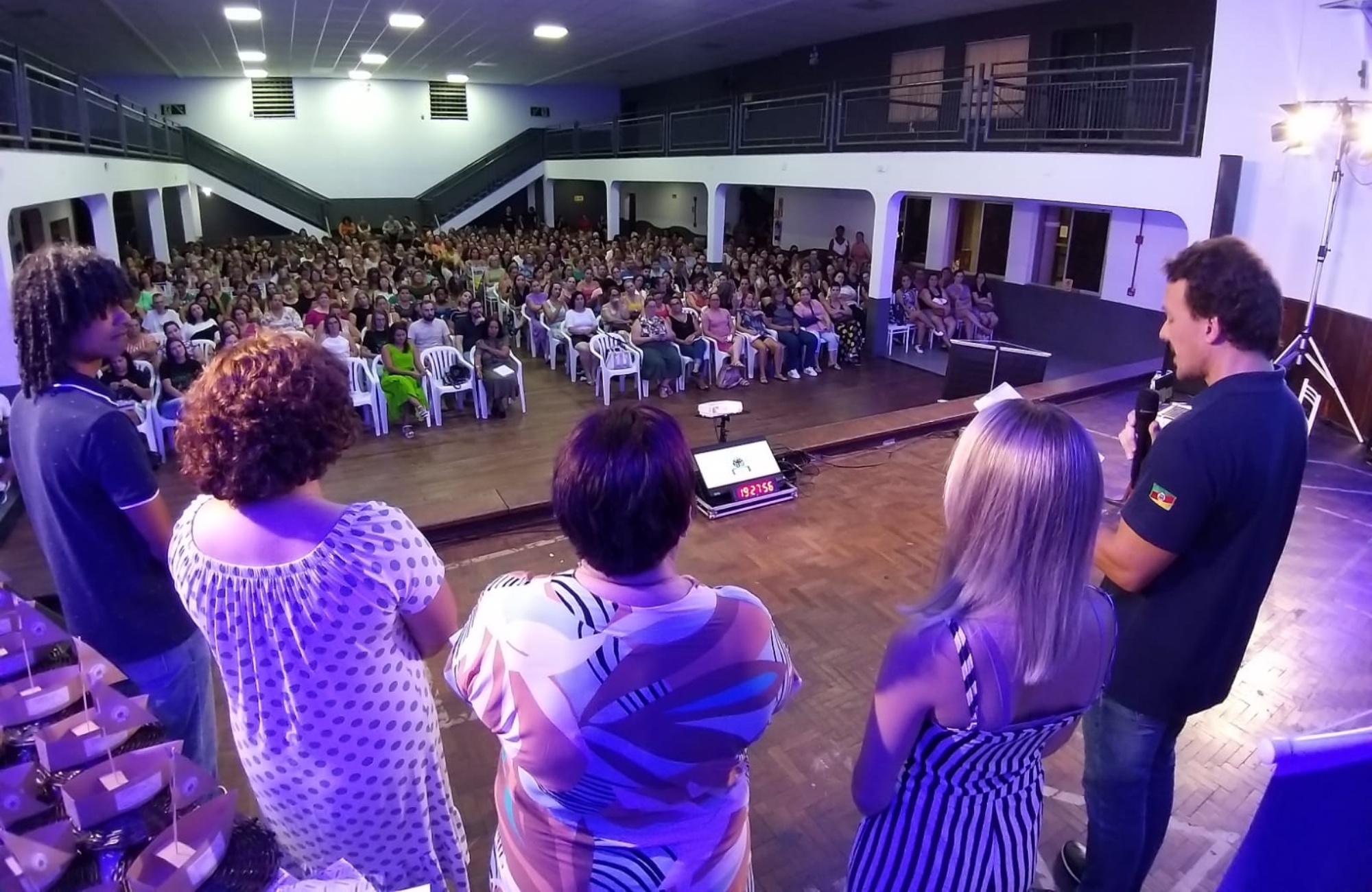 Em Montenegro, o retorno letivo dos educadores da rede municipal foi realizado através de uma palestra no clube Grêmio Gaúcho. Na ocasião, os 500 profissionais presentes puderam contar com uma cerimônia e um café da tarde especial. Durante toda a semana, os docentes terão atividades de formação para receber os mais de 7.500 alunos a partir da quinta-feira, 23. O ministrante da palestra foi o consultor organizacional e escritor Eduardo Shinyashiki que tratou sobre as competências socioemocionais na educação e na vida do educador. Durante a ação, os docentes participaram das dinâmicas propostas pelo convidado, que veio ao município através de uma parceria da Prefeitura e do Serviço Social do Comércio (Sesc).