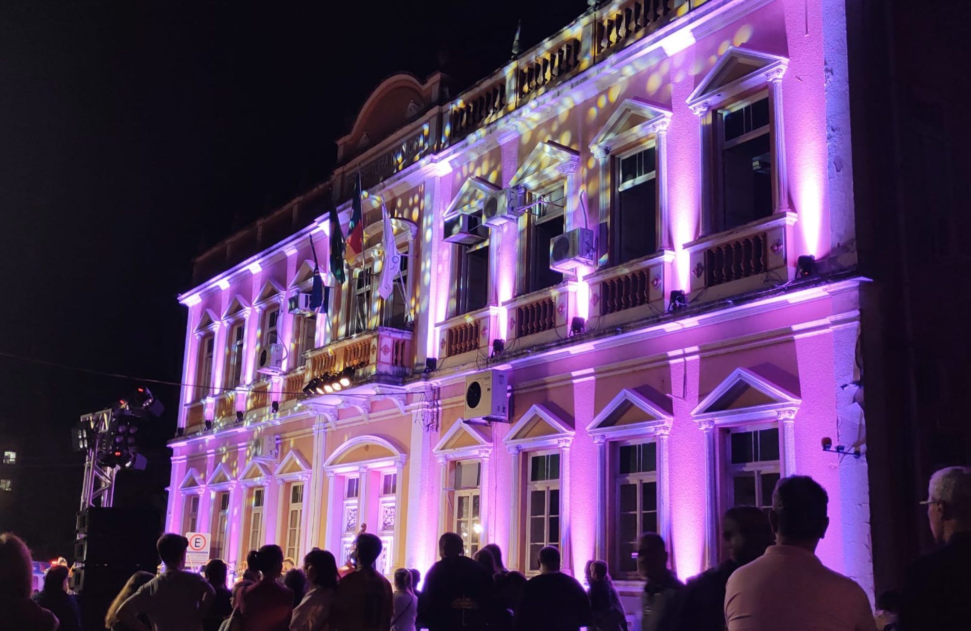 Durante toda a cerimônia, o foco era o próprio Palácio, que recebeu iluminação especial, forte, colorida, para ressaltar sua imponência e sua importância para a história do município. A frente do prédio, as janelas e a sacada principal receberam a presença de artistas que, com suas vozes, seus instrumentos e seus talentos, homenageavam o prédio. “Ele é símbolo de poder, de organização, de ordem e de planejamento. É uma espécie de bússola, indicando os rumos da cidade; e de motor, onde as grandes decisões para a evolução de Montenegro são tomadas”, destacou o prefeito Gustavo Zanatta, no alto da sacada central.