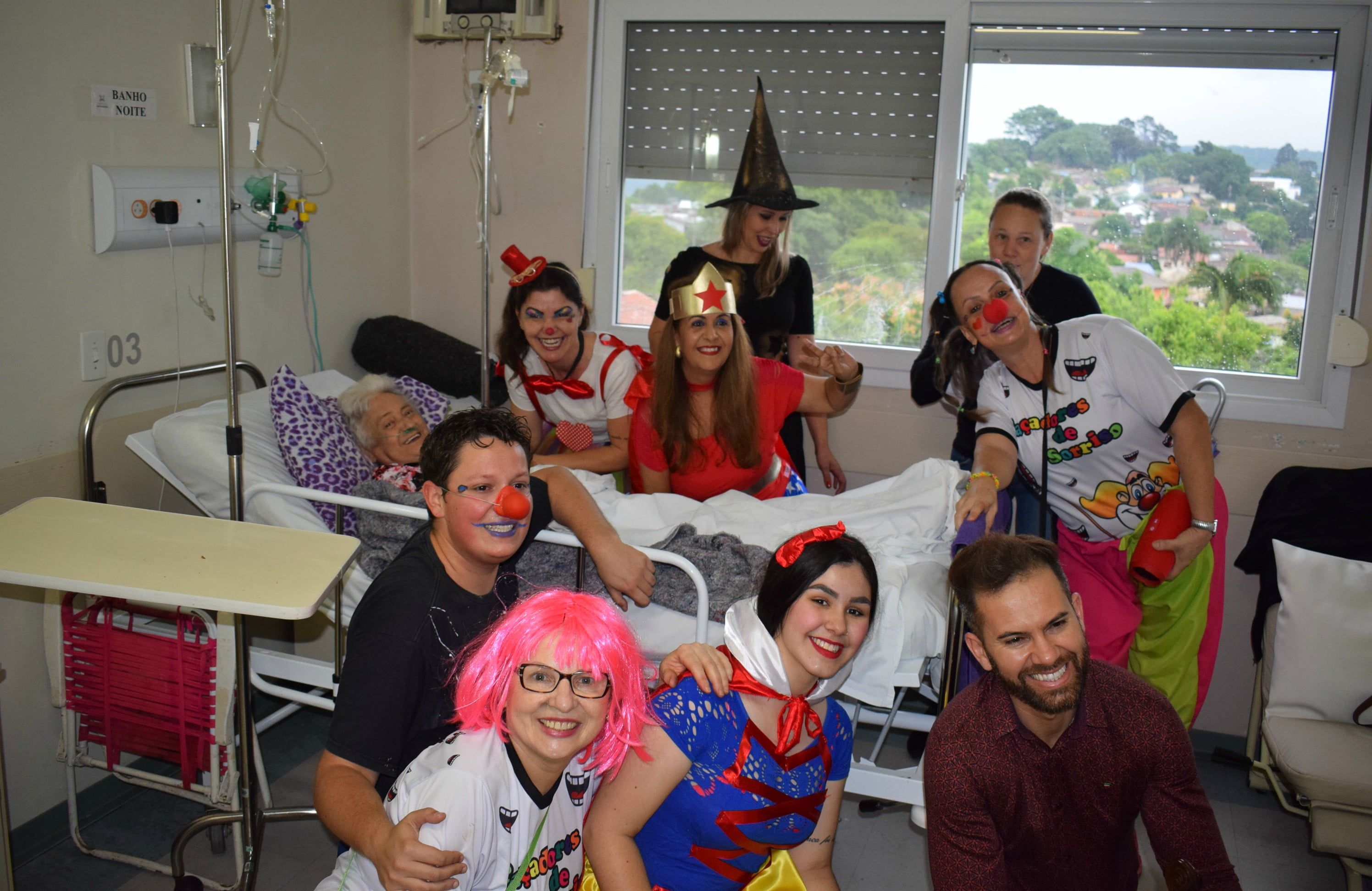 Branca de Neve, Mulher Maravilha, palhaços, bruxa e outros personagens quebraram o silêncio nos corredores e quartos do Hospital Municipal de Novo Hamburgo neste fim de semana. Com uma superdose de alegria, música e carinho, o grupo voluntário Caçadores de Sorriso percorreu todas as alas do hospital, surpreendendo pacientes e acompanhantes que foram contaminados por essa “invasão de felicidade”.