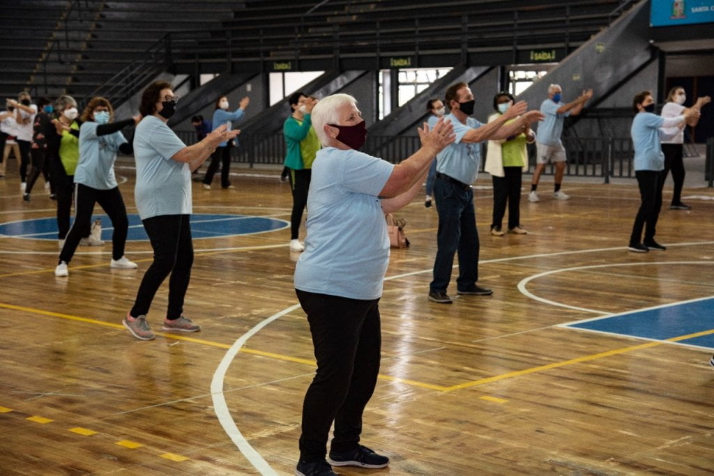 A atividade reuniu integrantes de dois projetos realizados pela Secretaria de Habitação, Desenvolvimento Social e Esporte: o Maturidade Esportiva e o Reativar. São 24 grupos de terceira idade do município que participam dos projetos. Nesta manhã, embalados por gaita e saxofone, os participantes puderam se exercitar orientados por profissionais de educação física.