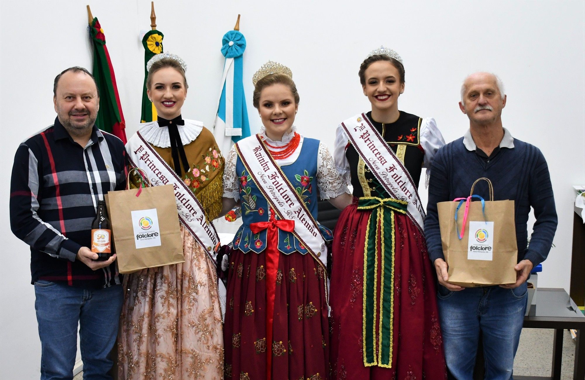 O prefeito, Luciano Klein, e o vice-prefeito, Max Mallmann, de Picada Café receberam, na segunda-feira, 26, a visita da Rainha e das Princesas do Folclore Alemão de Nova Petrópolis. Na oportunidade, a comitiva convidou as lideranças locais para a Abertura Oficial do 50º Festival Internacional de Folclore e para o Espetáculo “50 Anos de Emoção”, agendados para as 19h30 do dia 14 de julho, na Rua Coberta.