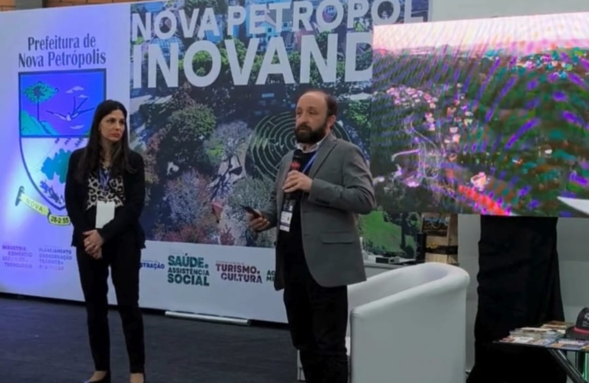 A Secretaria de Turismo e Cultura de Nova Petrópolis promoveu uma ação de integração entre o trade turístico e a comunidade cultural durante a ExpoNovaTech, na quinta-feira (11), no Centro de Eventos. O encontro reuniu mais de 50 empreendedores com o objetivo de fortalecer conexões, incentivar trocas de contatos e materiais de divulgação, além de estimular novas parcerias estratégicas que consolidem a cidade como destino turístico.