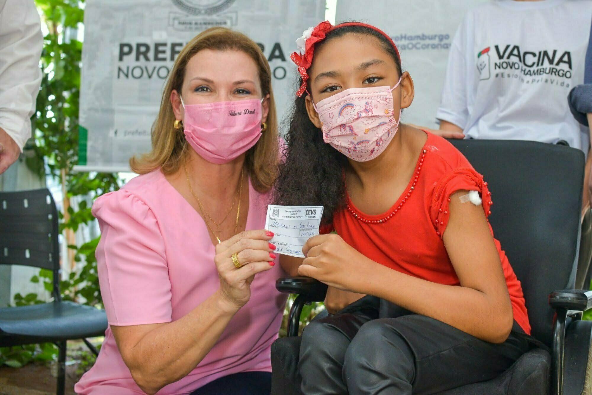 A menina Mariani de Borba Frank Athaíde, 10 anos, recebeu nesta quarta-feira, 19, a vacina contra a Covid-19, marcando simbolicamente o início da imunização de crianças de 5 a 11 anos em Novo Hamburgo. “Meu carinho e respeito a todos os profissionais de saúde, que estão na linha de frente nestes dois anos de pandemia. Novo Hamburgo é a única cidade da região metropolitana a tirar nota dez do Tribunal de Contas do Estado em transparência nas informações sobre vacinação. Isso mostra a dedicação e respeito pelo cidadão”, destacou a prefeita Fátima Daudt.
