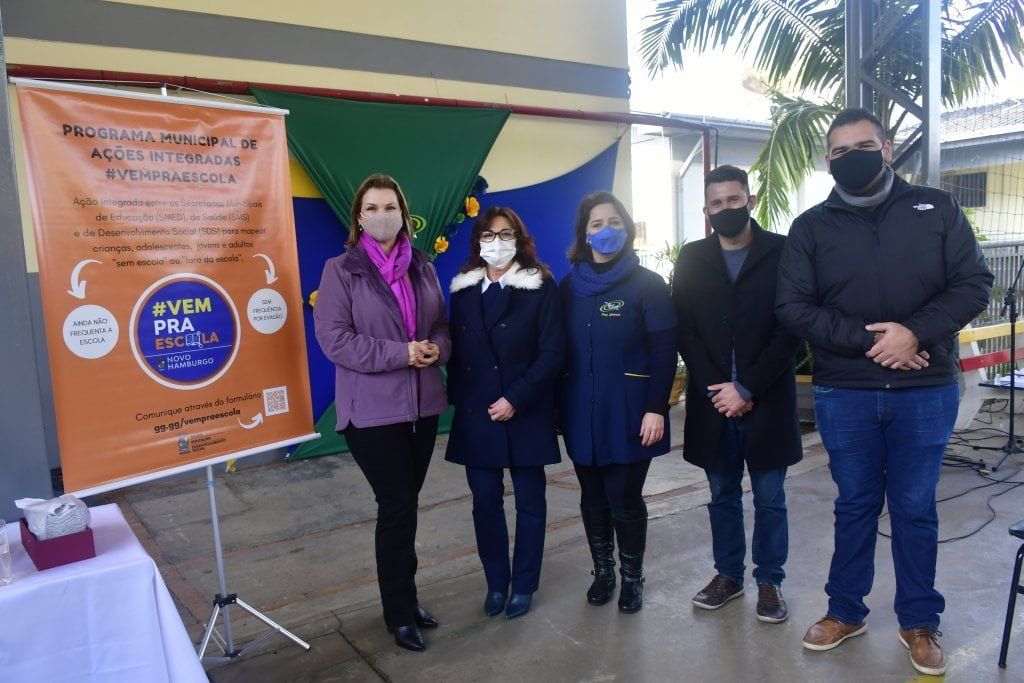 Com o objetivo de identificar e mapear crianças, adolescentes e adultos que ainda não frequentam a escola ou que tenham abandonado os estudos, a Prefeitura de Novo Hamburgo elaborou o Programa Municipal de Ações Integradas #VemPraEscola. A iniciativa envolve as Secretarias Municipais de Educação (SMED), da Saúde (SMS) e de Desenvolvimento Social (SDS). O programa foi lançado oficialmente na manhã desta quinta-feira, 1º de julho, na Escola Municipal de Ensino Fundamental (EMEF) Boa Saúde, em evento com a presença de convidados e autoridades.