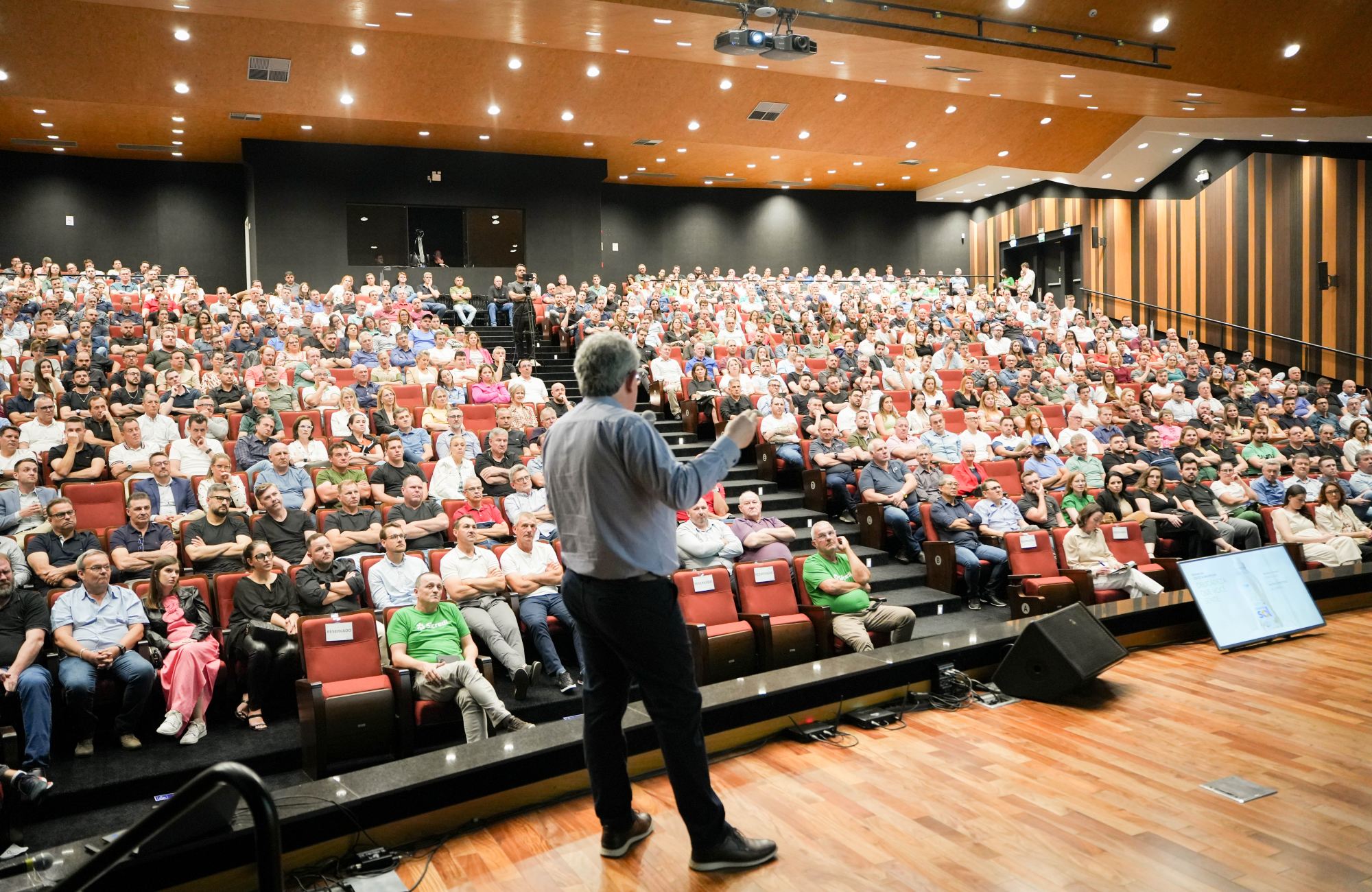 Borscheid afirmou que a empresa vive um ciclo de crescimento acelerado. “Nós mais do que dobramos nossas vendas nos últimos cinco anos, e somente em 2025 estamos crescendo acima de 15%. Um desempenho que inclusive nos faz comemorar a marca de R$ 1 bilhão de faturamento anual pela primeira vez”, destacou o palestrante. Ele também mencionou a evolução tecnológica, a implementação de cultura organizacional focada em valores e estratégias e o papel dos cerca de 700 colaboradores. “Temos as máquinas mais modernas. Mas não é só isso, as pessoas são fundamentais”, afirmou, ao explicar práticas do programa Nosso Jeito Girando Sol de Ser.