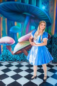Continuando o mergulho nesse universo, os visitantes encontrarão uma reprodução da mesa do Chapeleiro, com itens que remetem ao chá como bolos, xícaras e poltronas, uma Alice com quase três metros de altura, além de uma árvore de seis metros com folhas pintadas a mão.