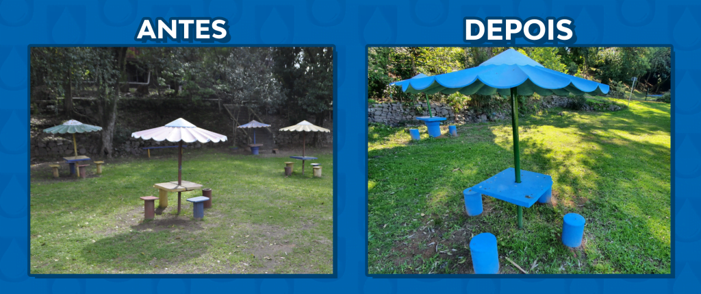 As mesas cobertas onde as famílias podem se abrigar do sol e fazer piqueniques também receberam reforços. Os bancos foram feitos a partir de pedaços de tubulação que seriam descartados e reforçados com concreto. Além disso, nova pintura e limpeza melhorou a aparência.