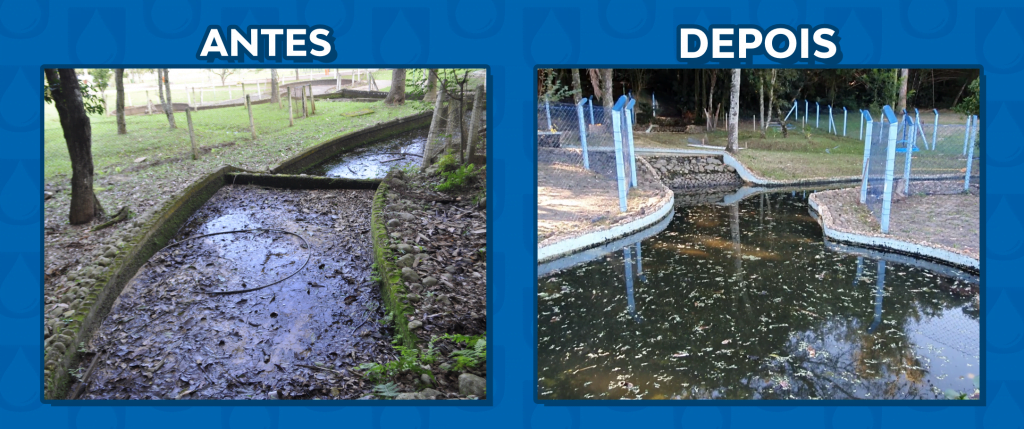 O espaço conta com um lago que estava seco e praticamente esquecido. Hoje, revitalizado, recebeu carpas e até tartarugas como novos moradores.