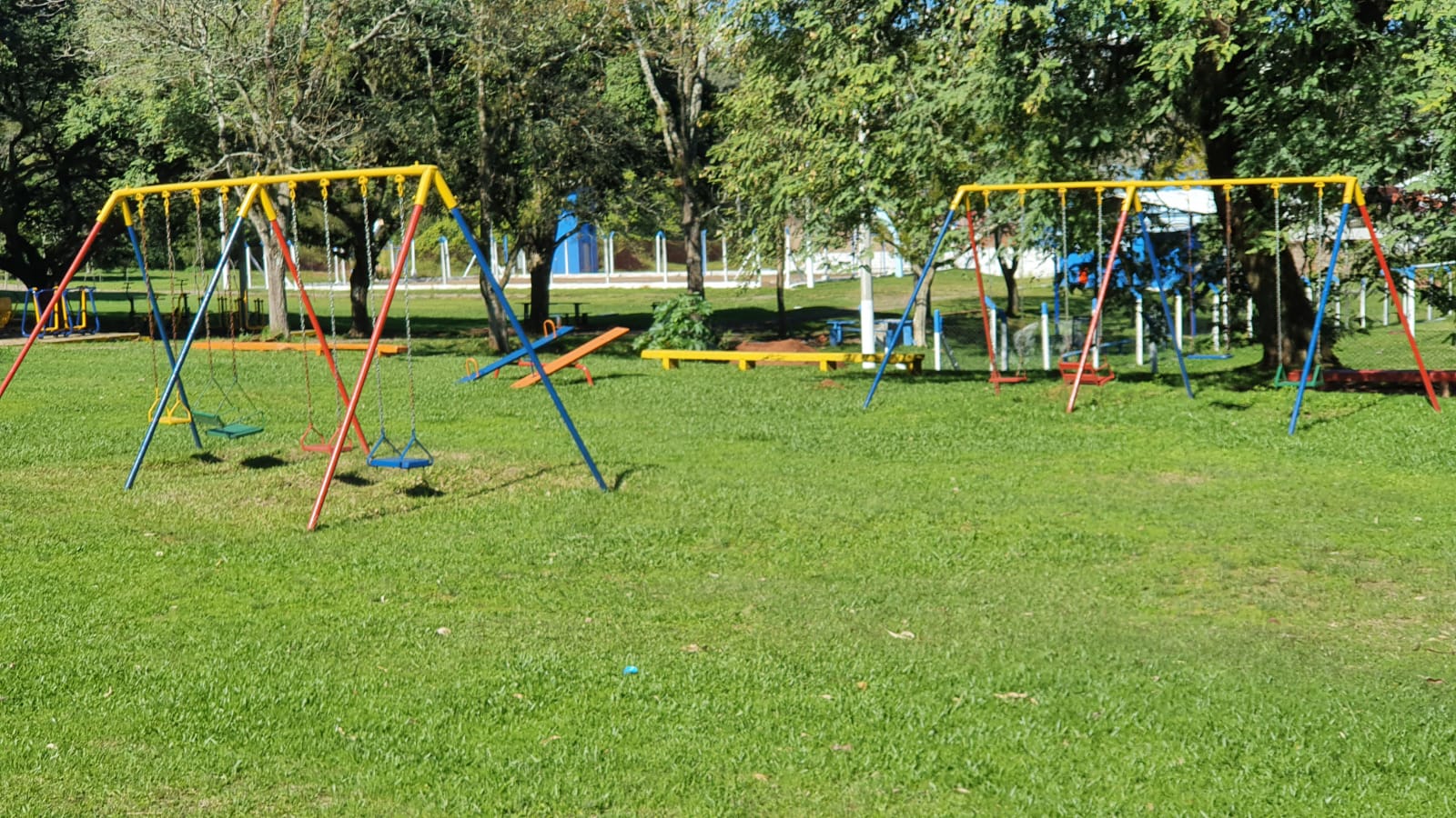 Os banheiros do parque ganharam cara nova. Antes, pichados e mal cuidados, foram completamente reformados e pintados. Os vestiários do campo de futebol também.