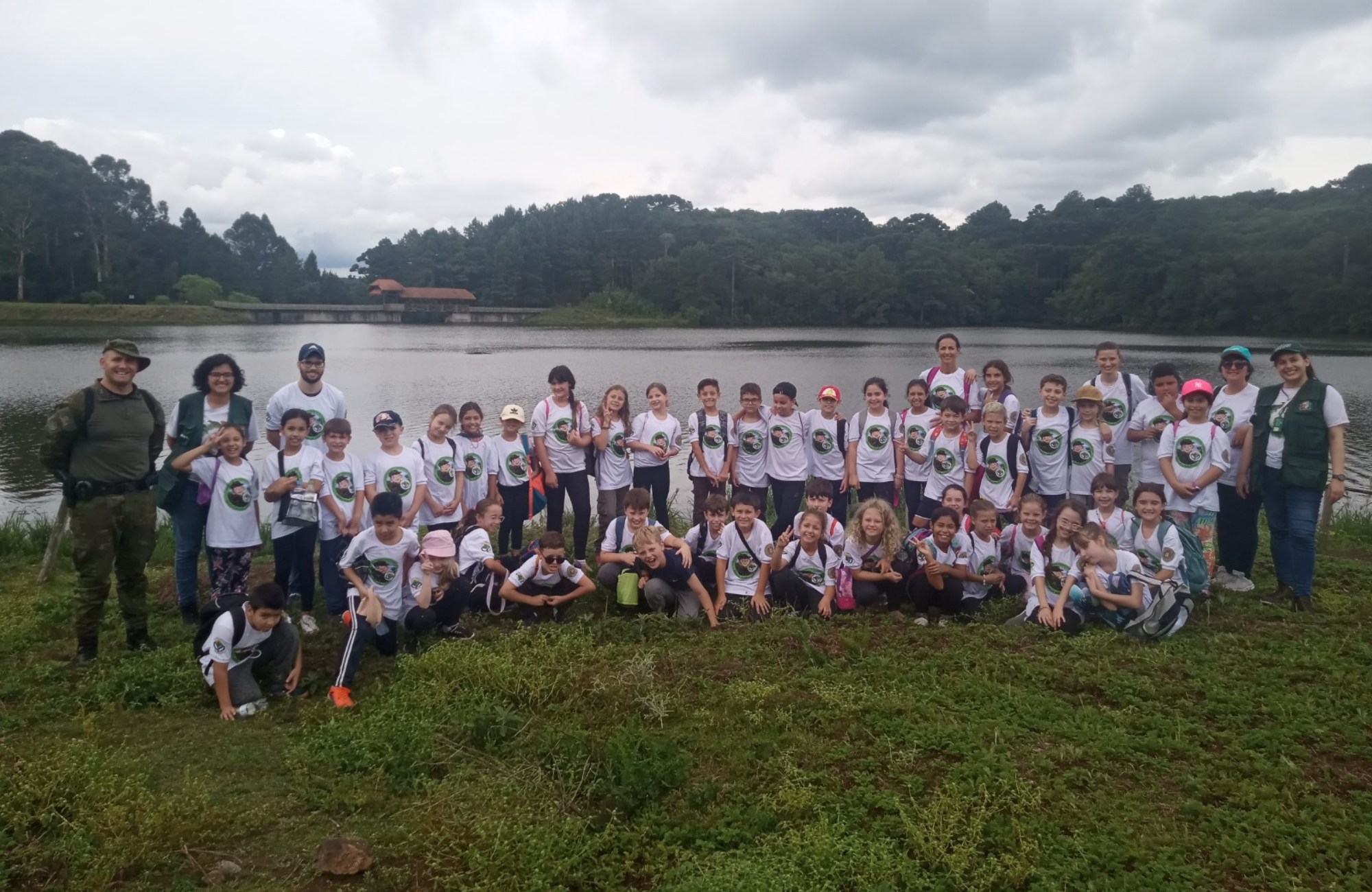 Em uma parceria entre a Secretaria Municipal do Meio Ambiente de Gramado (SMMA) e o 3° Batalhão Ambiental da Brigada Militar de Canela (3° BABM), os alunos exploraram uma trilha no Parque dos Pinheiros, guiada pelos técnicos da Secretaria do Meio Ambiente, com explicações sobre o bioma Mata Atlântica, importância das ações de conservação e curiosidades sobre a fauna e flora local. Além disso, os alunos participaram de atividades lúdicas, que não só geraram diversão, mas também sensibilizaram os pequenos sobre ecologia, meio ambiente e sustentabilidade.