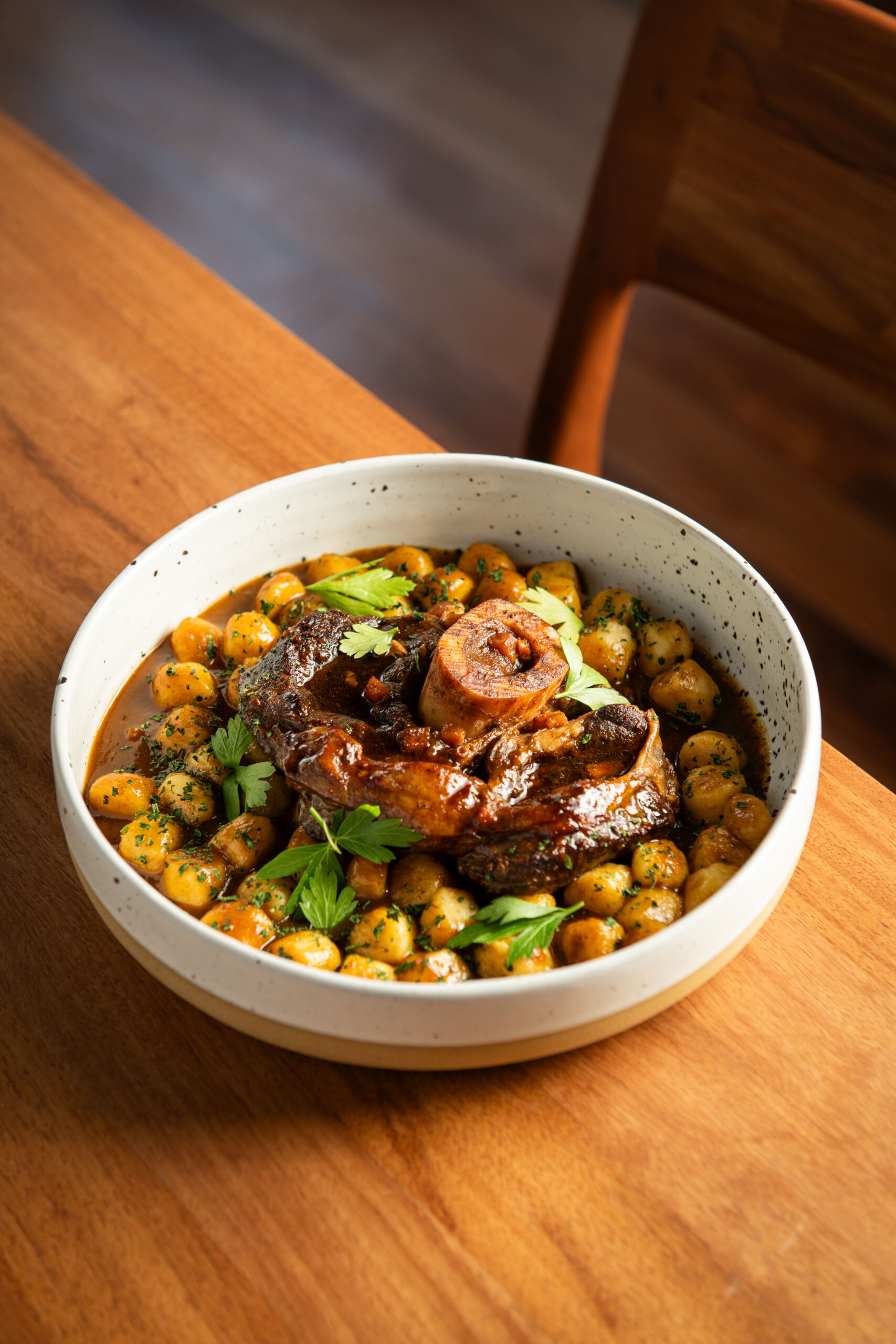 A experiência se completa com o restaurante da vinícola, que abre ao público com consultoria do chef Rodrigo Bellora, do restaurante Vale Rústico. O menu foi desenvolvido em parceria com Paulo Geremia e reúne releituras de clássicos da imigração italiana, como lasanha, polenta, tortéi e ossobuco, além de pratos menos tradicionais na Serra Gaúcha, como bacalhau. Em todas as propostas, o vinho assume papel central na experiência gastronômica. A carta inclui rótulos da própria vinícola e também vinhos de todas as vinícolas certificadas com Denominação de Origem da região, além de exemplares da DO Altos de Pinto Bandeira. O espaço também funciona como ponto de venda dos vinhos da Valmarino no Vale dos Vinhedos.
