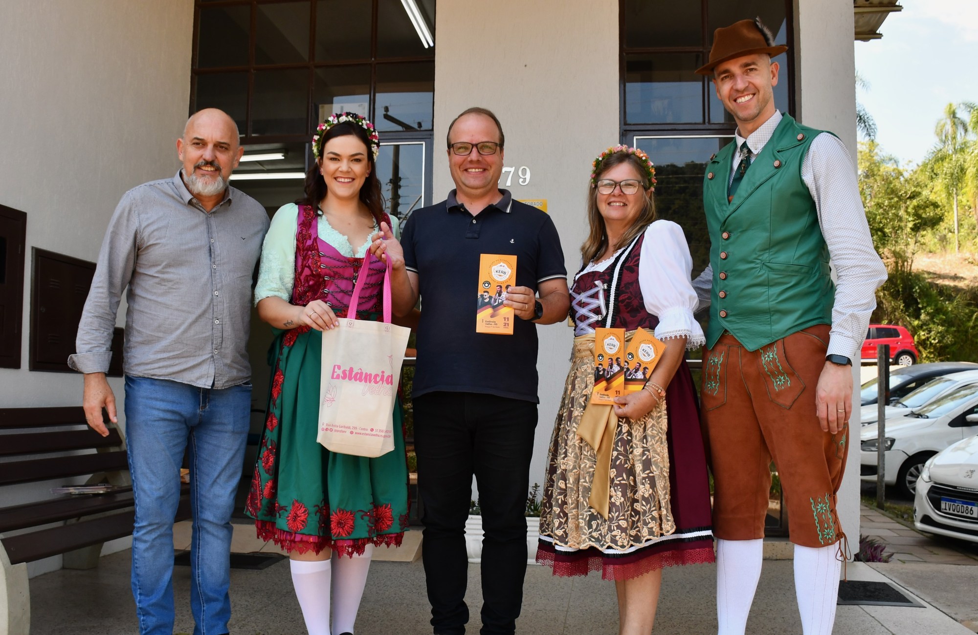 Picada Café recebeu na manha desta segunda-feira (1º) uma comitiva de divulgação do 41º Festival de Kerb de Estância Velha. Representando o prefeito Luciano Klein (UNIÃO), o secretário de Administração e Fazenda cafeense, Claus Altevogt, recebeu os representantes do festival, um deles o vice-prefeito estanciense Airton Haag. O objetivo da visita foi divulgar os eventos.