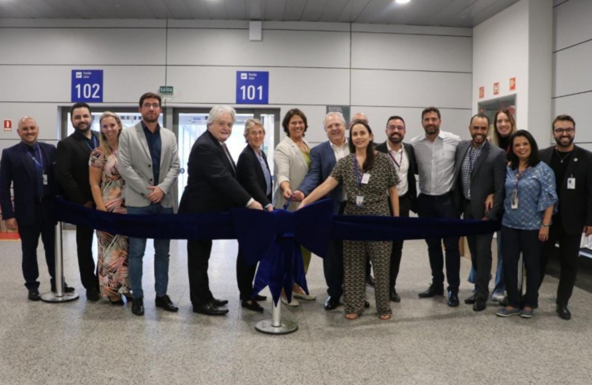 O voo da Latam que liga Porto Alegre a Santiago, no Chile, voltou a decolar do Aeroporto Internacional Salgado Filho no domingo (26). A abertura simbólica da faixa ocorreu no portão de embarque do check-in internacional e contou com a presença do secretário de Turismo, Vilson Covatti; do cônsul-geral do Chile em Porto Alegre, Aldo Famoralo; da COO (Chief Operation Officer) da Fraport, Sabine Trenk; da presidente da Associação Brasileira de Agências de Viagens do Rio Grande do Sul (Abav-RS) Lúcia Bentz; e da coordenadora sênior de Relações Institucionais da Latam, Lígia Sato.