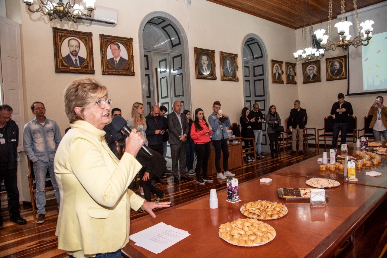 A prefeita de Santa Cruz do Sul Helena Hermany apresentou à imprensa, nesta quarta-feira (21), as atividades da Semana do Município. Em encontro realizado no Salão Nobre do Palacinho, Helena apresentou as atividades, que serão realizadas entre amanhã (23) e sexta-feira (30). A Semana do Município celebra o 144º aniversário de Santa Cruz do Sul, que é na quinta-feira (28). No calendário de eventos, estão previstas entrega de obras, inaugurações de novos serviços, atividades esportivas, culturais e artísticas, dentre outras ações.