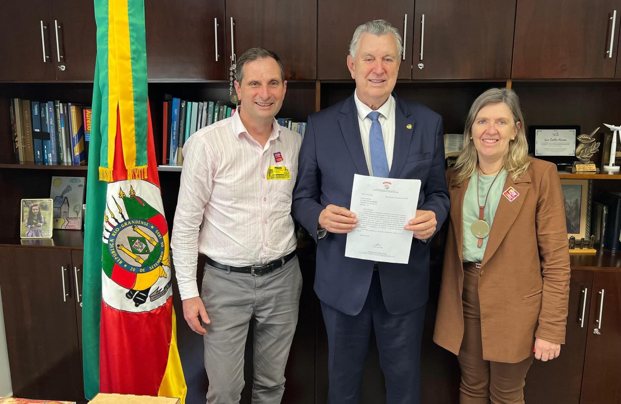 O prefeito e a secretária também foram recebidos por deputados federais de diferentes bancadas: Marcel van Hattem (NOVO), Franciane Bayer (Republicanos), Lucas Redecker (PSDB) e Afonso Motta (PDT). No Senado, o grupo esteve no gabinete de Hamilton Mourão (Republicanos), onde a reunião ocorreu com a chefe de gabinete, Liziane Bayer.