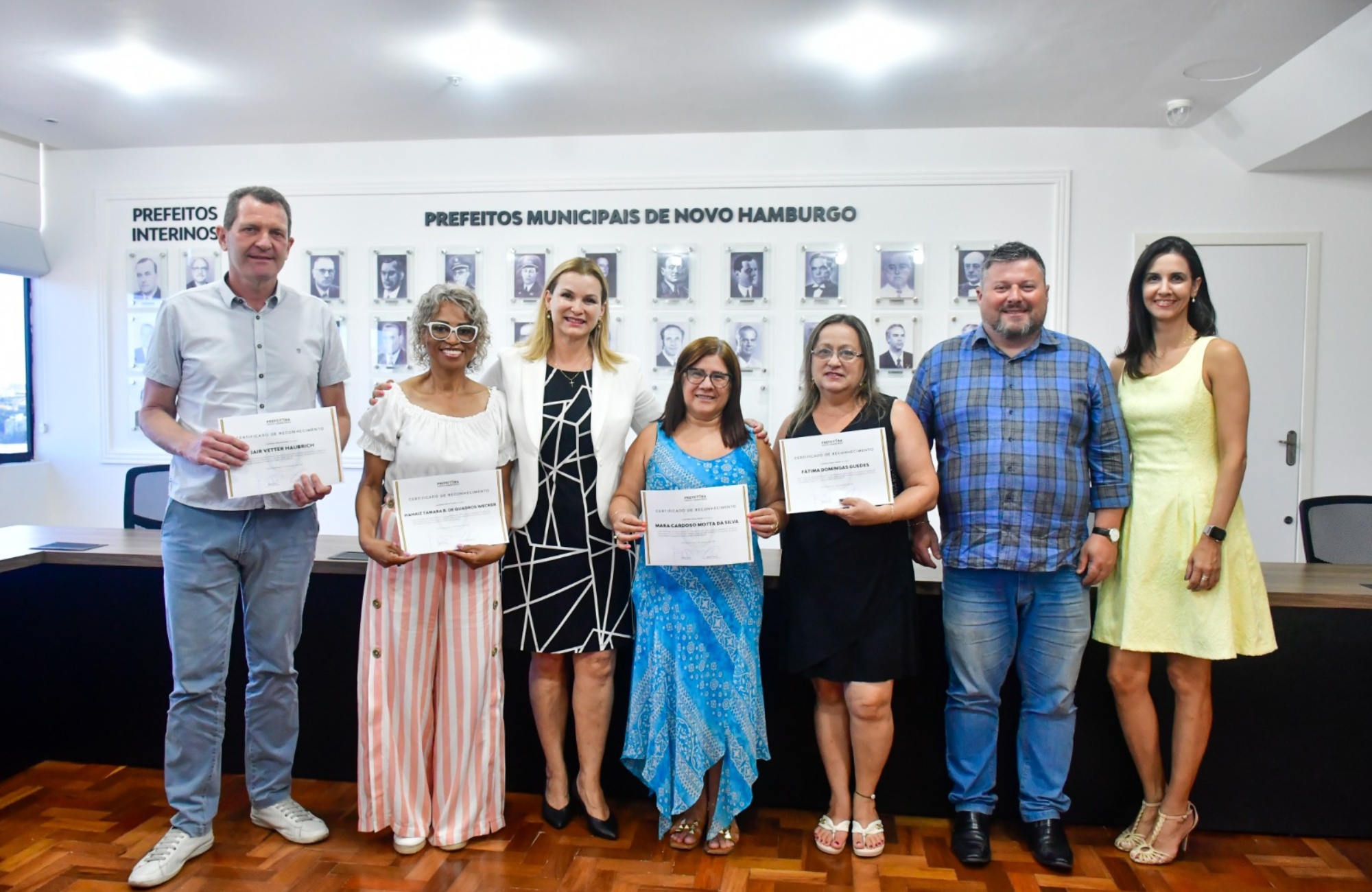 A prefeita comentou sobre a importância de ações como esta. “Gosto de agradecer sempre, realizando essa singela homenagem aos servidores que dedicaram anos de trabalho em prol da nossa comunidade”, disse. Fátima estava acompanhada pelo secretário de Administração, Fauston Saraiva, pela procuradora-geral do Município, Fernanda Luft, e pelo assessor jurídico especial, Cácio Bortolini.