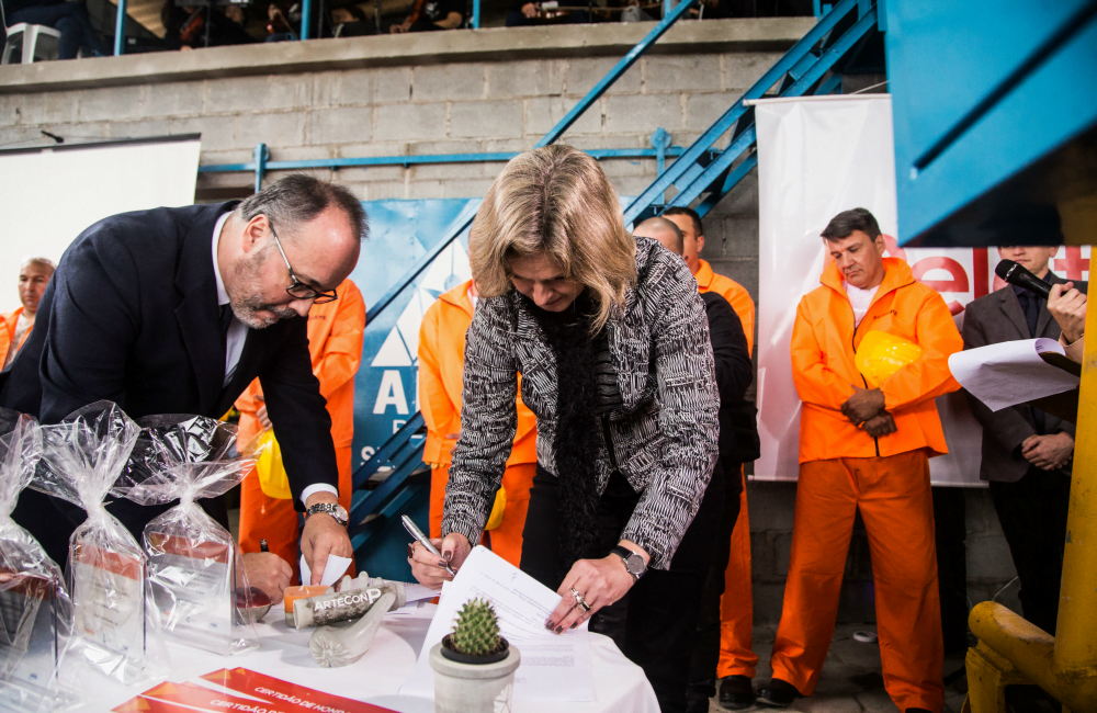 Nesta quinta-feira (30), às 14h, ocorreu a inauguração da fábrica de artefatos de concreto (ArteConP) no Presídio Regional de Pelotas. Fruto de um trabalho já de oito meses, em parceria com a Universidade Católica, a Prefeitura do Município e o Governo do Estado do RS, a ArteConP ocupa um espaço na própria área do presídio.
