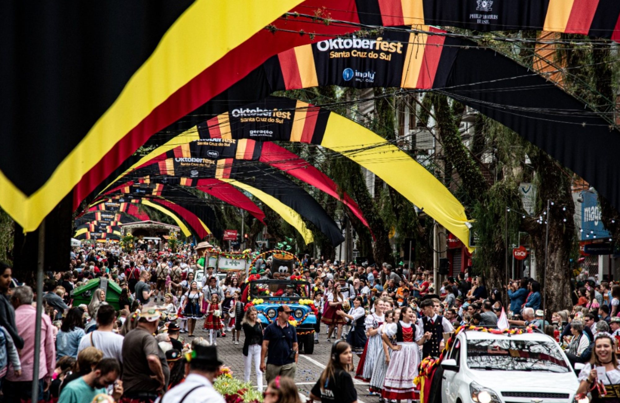 Na sequência veio a família símbolo da festa, Fritz, Frida, Max e Milli, demais entidades representativas, diversas alas e grupos de dança. A passagem pela Floriano ainda destacou o esporte, o turismo, as delícias da culinária alemã, a música e o chope com o tradicional Bierwagen (carro de chope). Por falar em tradição, a Zig Zag Zug , conhecida como bicicleta coletiva, também se fez presente. O desfile teve seu encerramento no Parque da Oktoberfest.