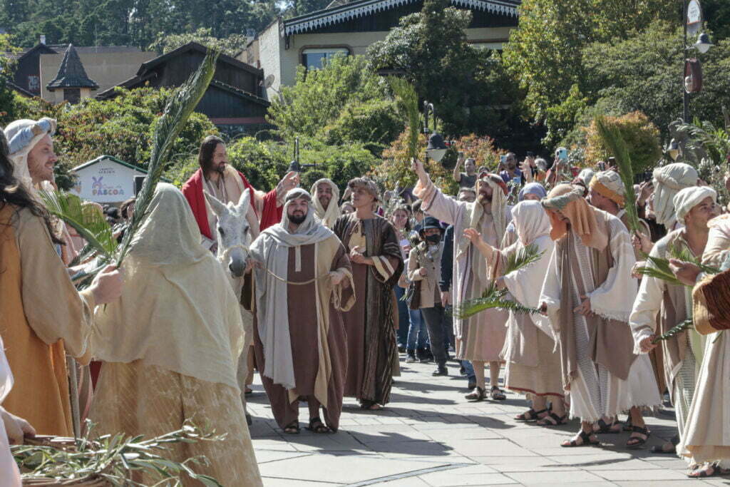 Em tom emocionante, um personagem representando Jesus Cristo fez o percurso montando num jumento e um elenco usou roupas de época para simbolizar a entrada triunfal de Cristo em Jerusalém. Na chegada da procissão, os fiéis que acompanharam o cortejo saudaram o Rei Humilde com ramos de oliveira. “Os ramos são usados para acolher e aclamar Cristo como rei. Porém, o reinado se manifestou na cruz e na ressurreição”, explica o padre Lucas.