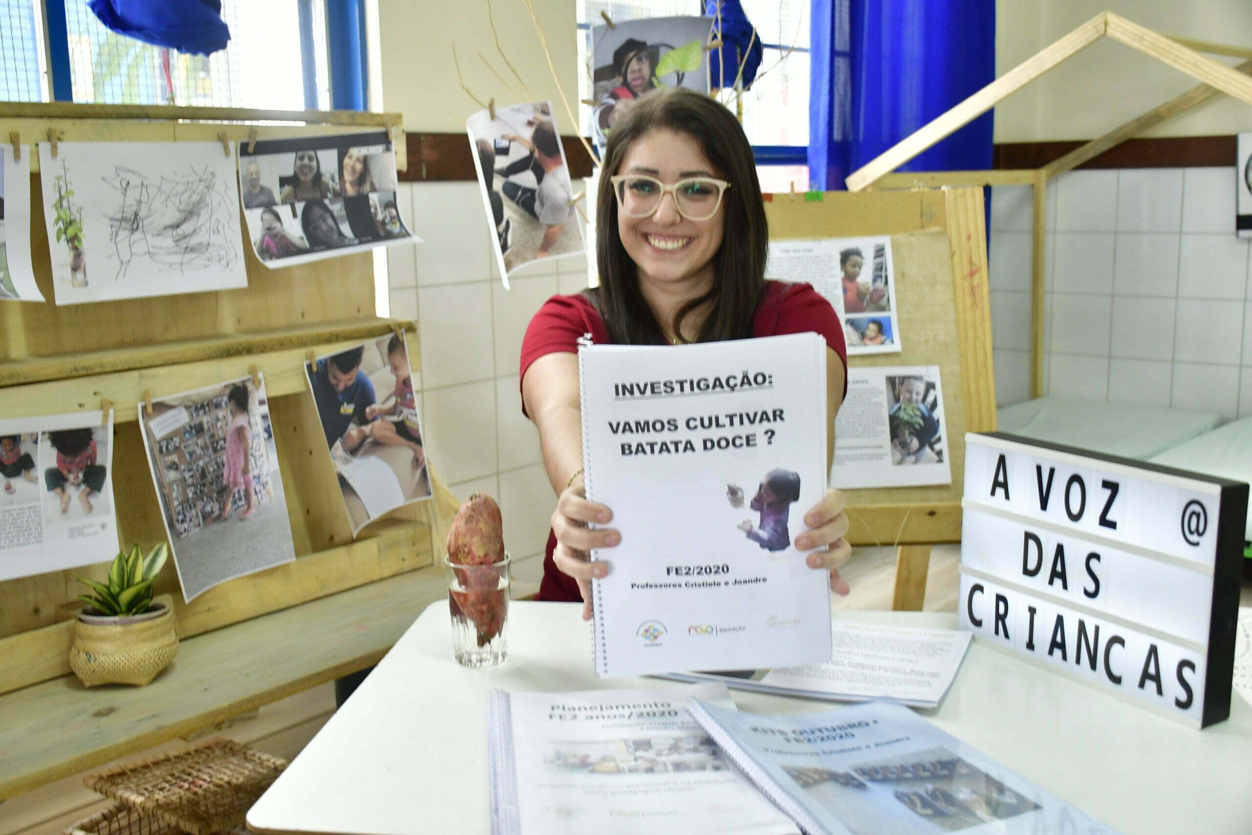 Cristiele conquistou a Academia de Selecionadores com o trabalho A voz das Crianças: conexões que aproximam. Desenvolvido na Educação Infantil, com crianças na faixa dos dois anos de idade, a professora estimulou a turma a acompanhar o crescimento da batata doce, o que possibilitou integrar conhecimento científico, cuidado com as plantas e registros, em especial o desenho. Como a maioria das famílias só tinha o celular, as conversas e atividades aconteciam de forma individual, em duplas ou trios. O WhatsApp permitiu divulgar imagens e áudios, revelando que a linguagem oral das crianças deu um salto no período.