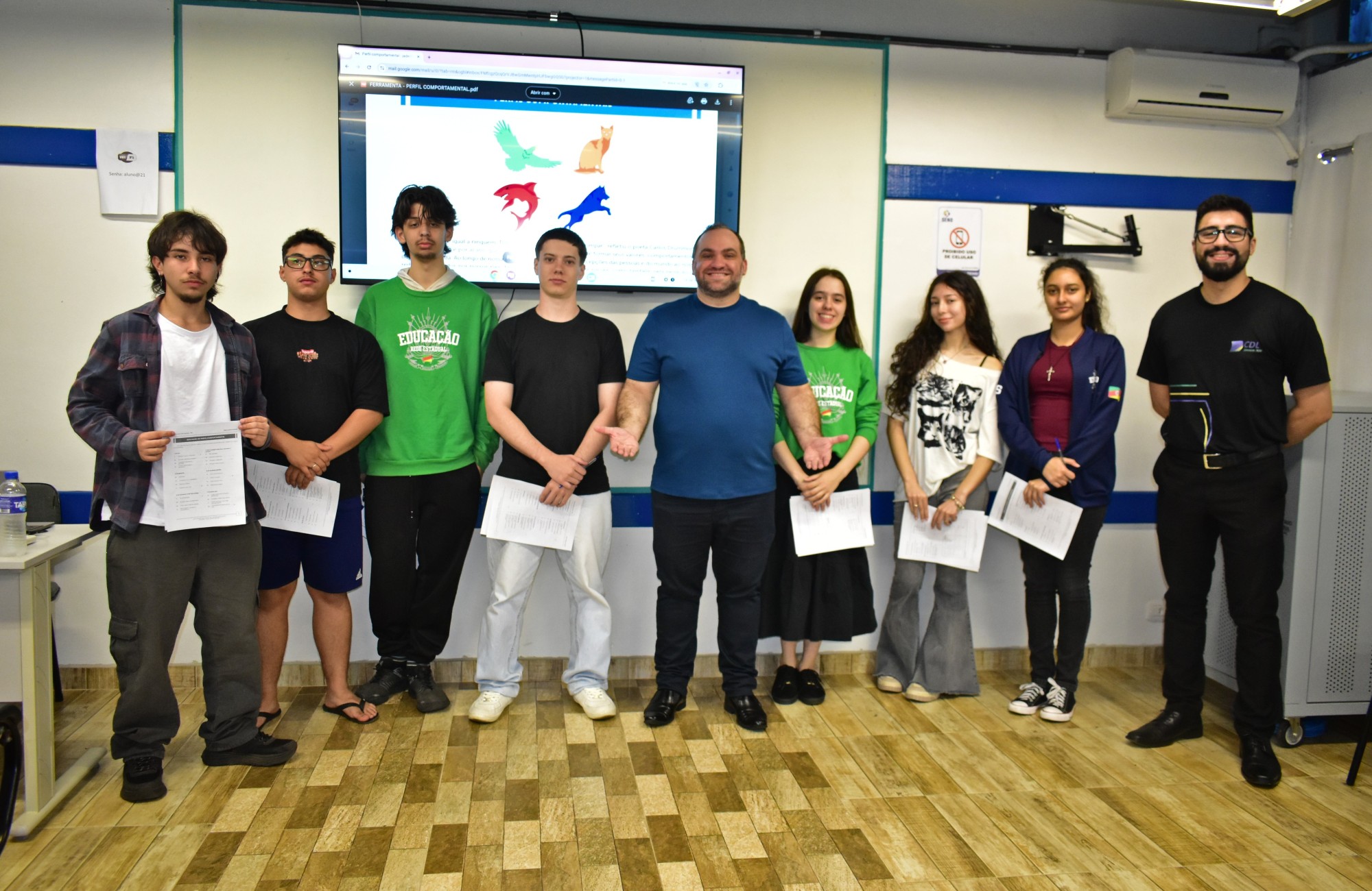 A aula foi ministrada pelo professor e gestor de inclusão das escolas da Informatize, João Razeira, e acompanhada pelo integrante da CDL Jovem, Gabriel Farias.