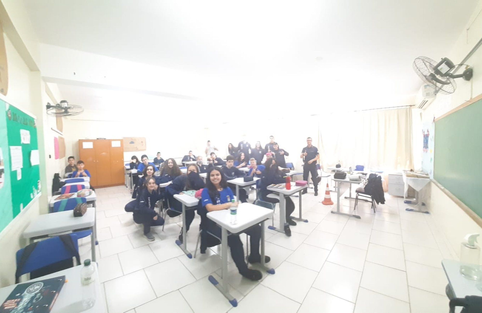 Nos últimos dias, os alunos da Escola Municipal Germano Dauernheimer participaram de uma palestra que abordou temas como trânsito, bullying, assédio, lesão corporal, drogas e furtos. Ministrada pelo guarda municipal Paulo Roberto de Oliveira, acompanharam as instruções, mais de 60 alunos dos 6º, 7º e 8º ano.